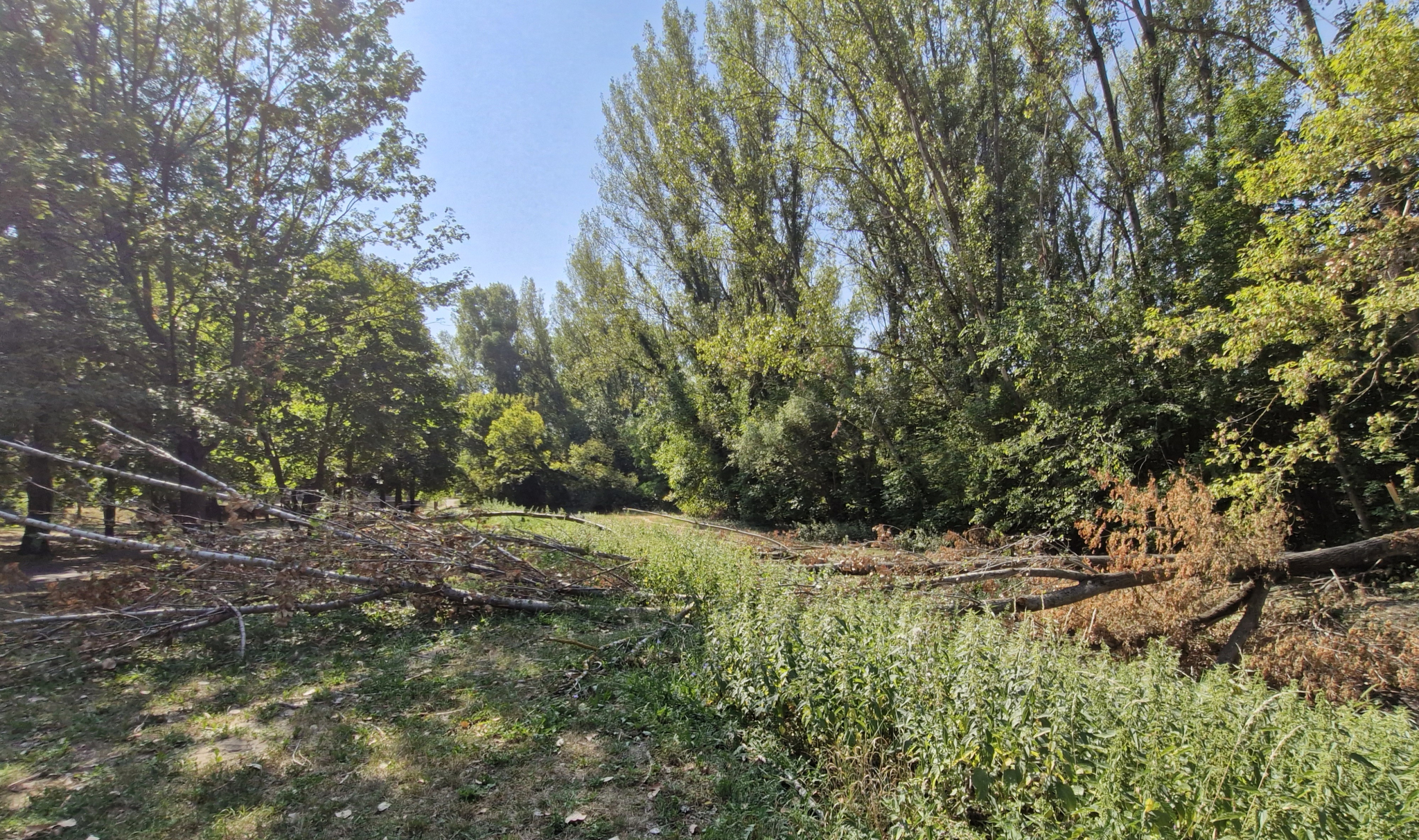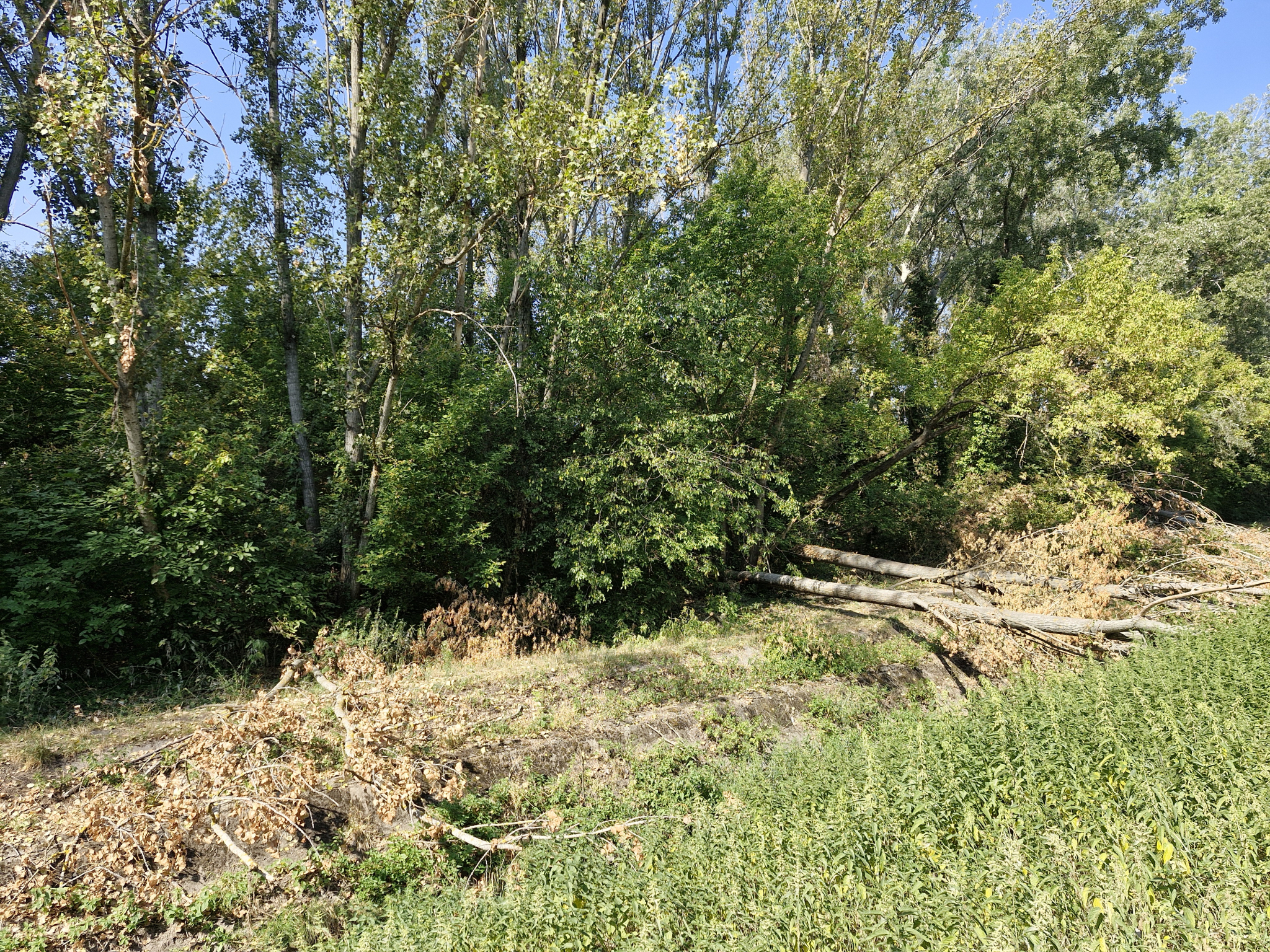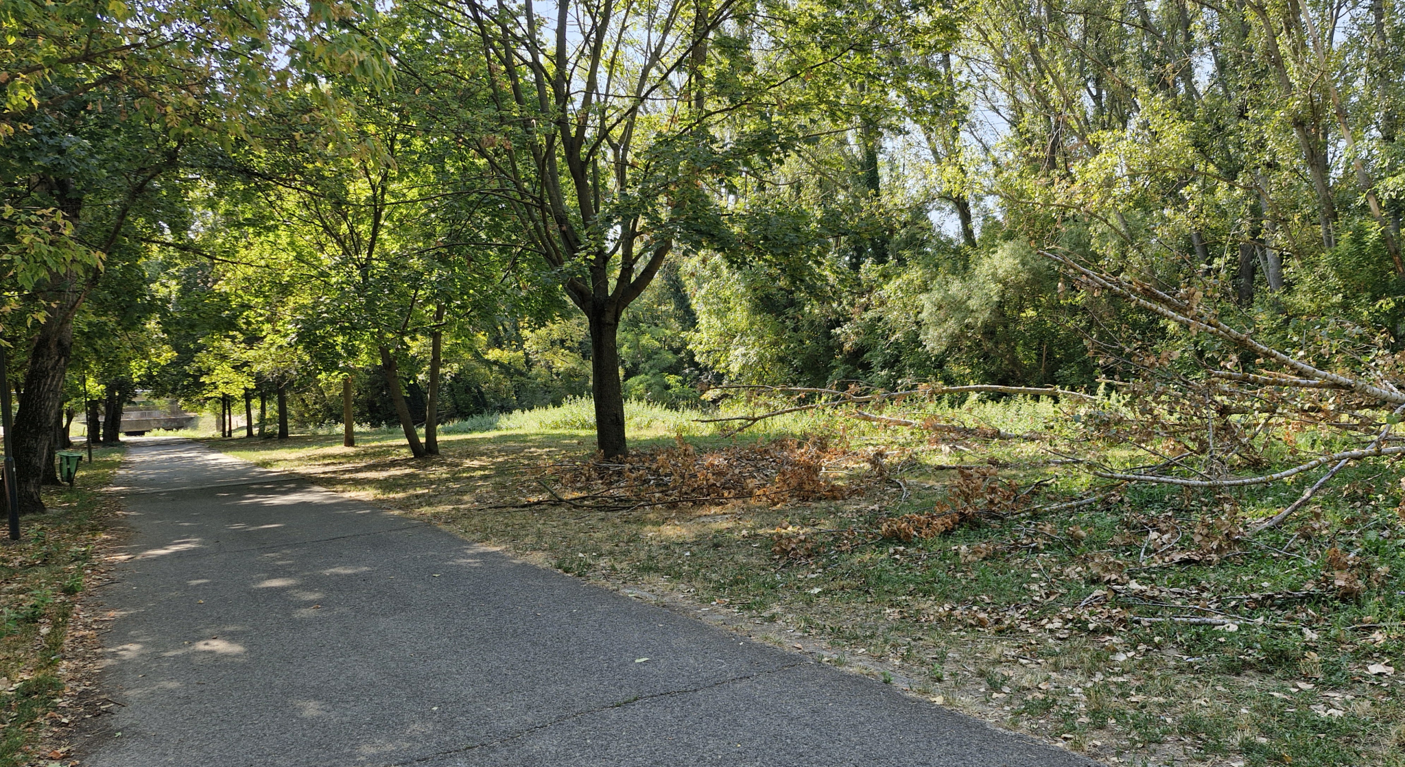 Újpesten a Szilas-parkon átfolyó Szilas-patakon keresztben több fa is kidőlt egy júliusi vihar következtében. A sétányt épp nem érinti, a kutyafuttató közelében találhatóak. Ma jártam arra újra, de a csalános miatt nem tudtam közelebb menni a képek kedvéért. Az elszáradó levelek, ágak potyognak a patakba. Ha majd valamikor megemelkedik a patak vize, biztosan gondot fognak okozni. Esetleg fel lehetne számolni? A túlparti csapás se használható sajnos.