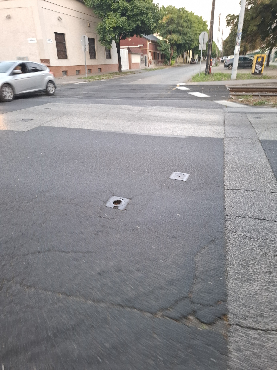 A Bihari út és a Szállás utca kereszteződésében hiányzik a közmű fedele.