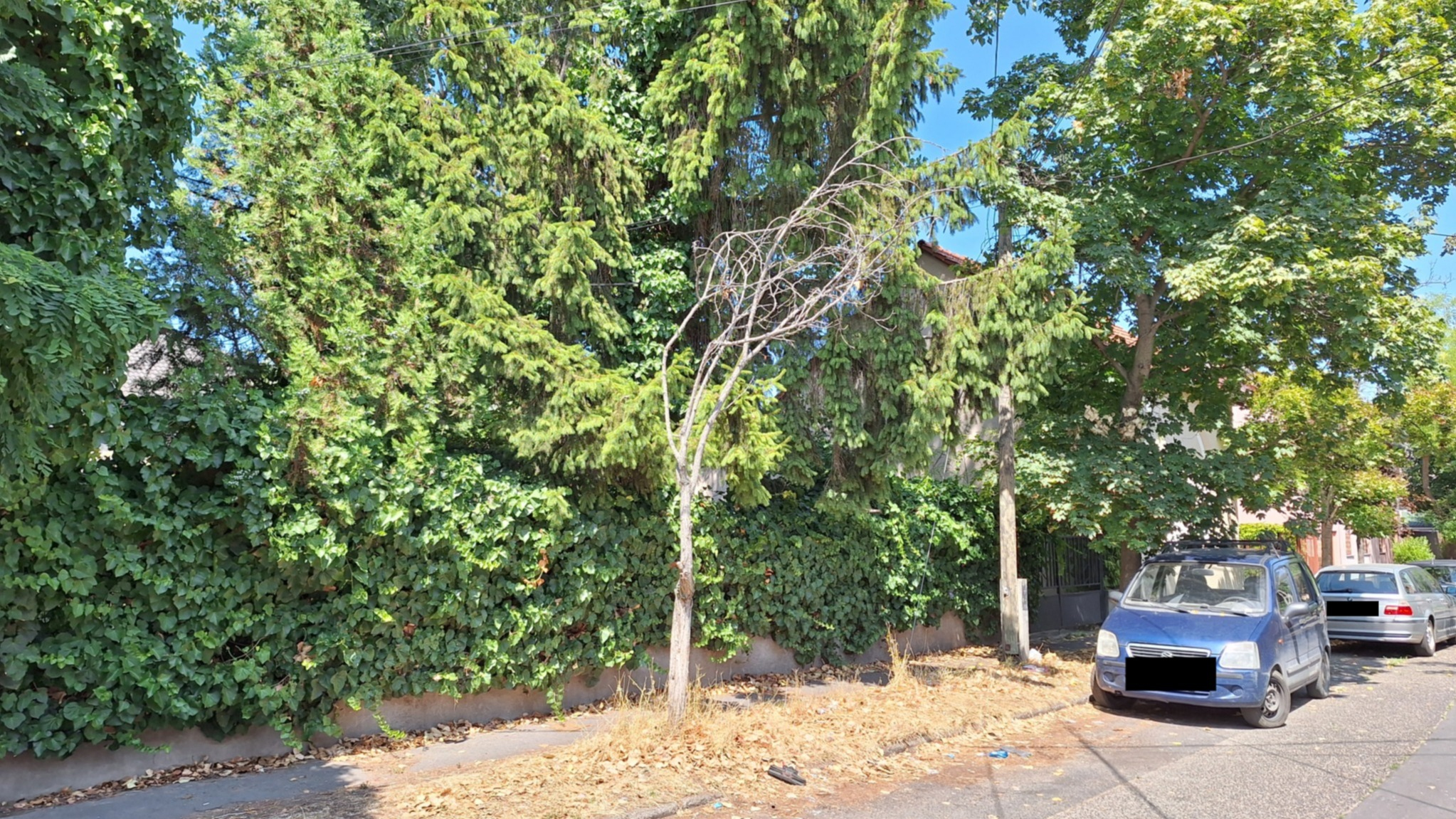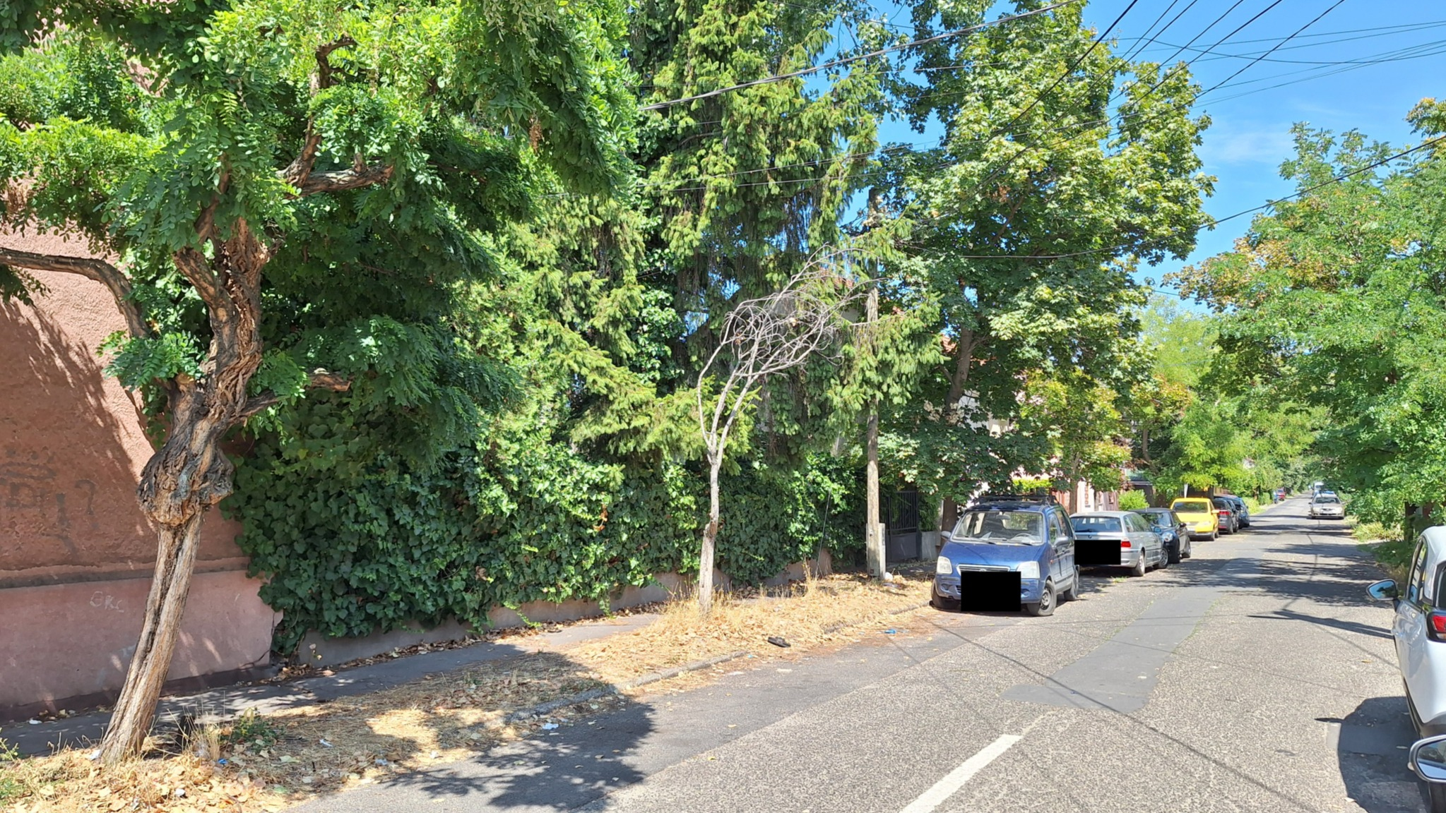 A Toldy Ferenc utca 1. előtt áll egy kiszáradt fa.