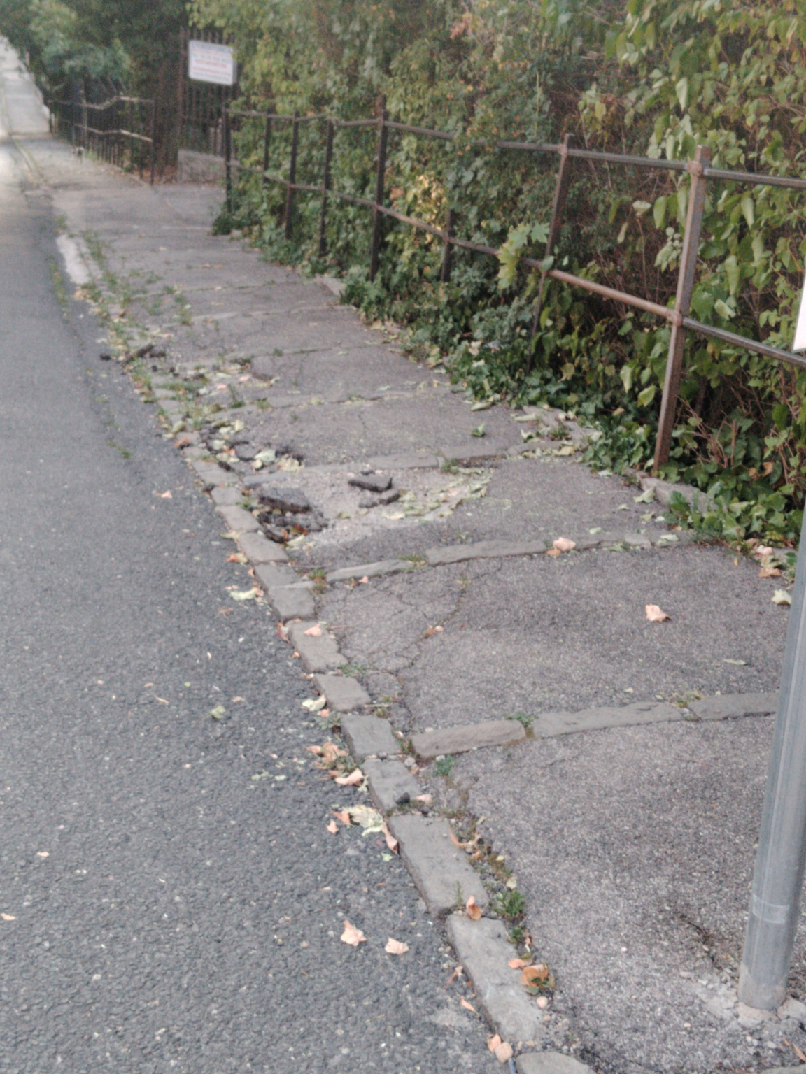 Egy idős hölgyet segített fel a párom a járdán elesett az össze tört betonon. Nagyon rossz állapotban van itt a járda.