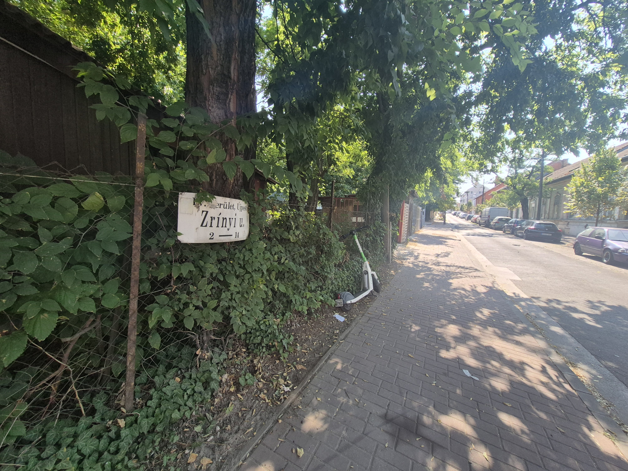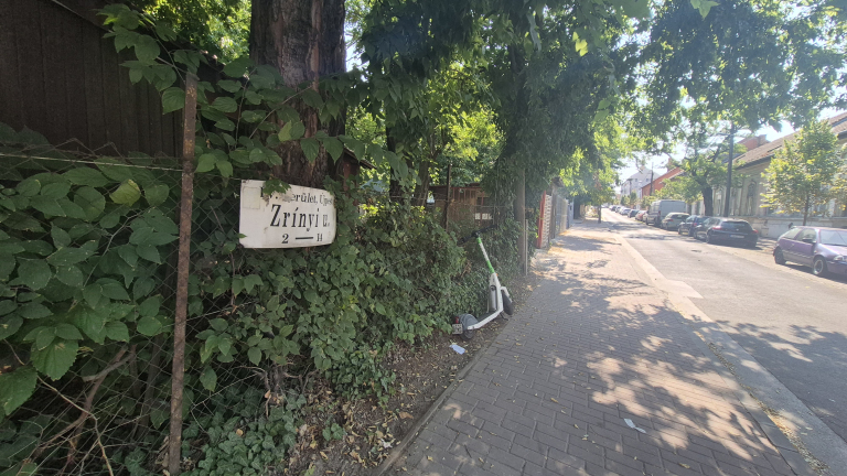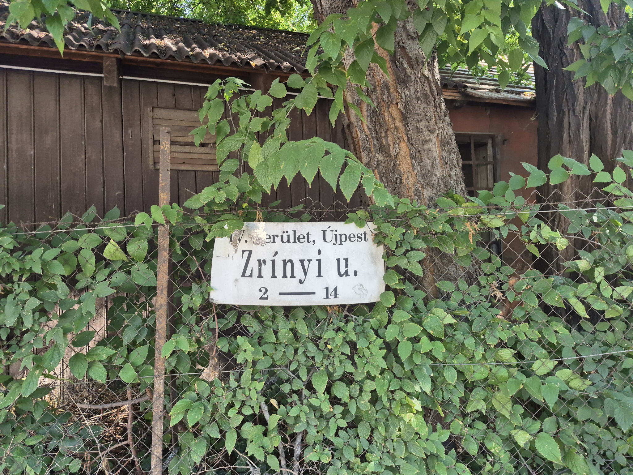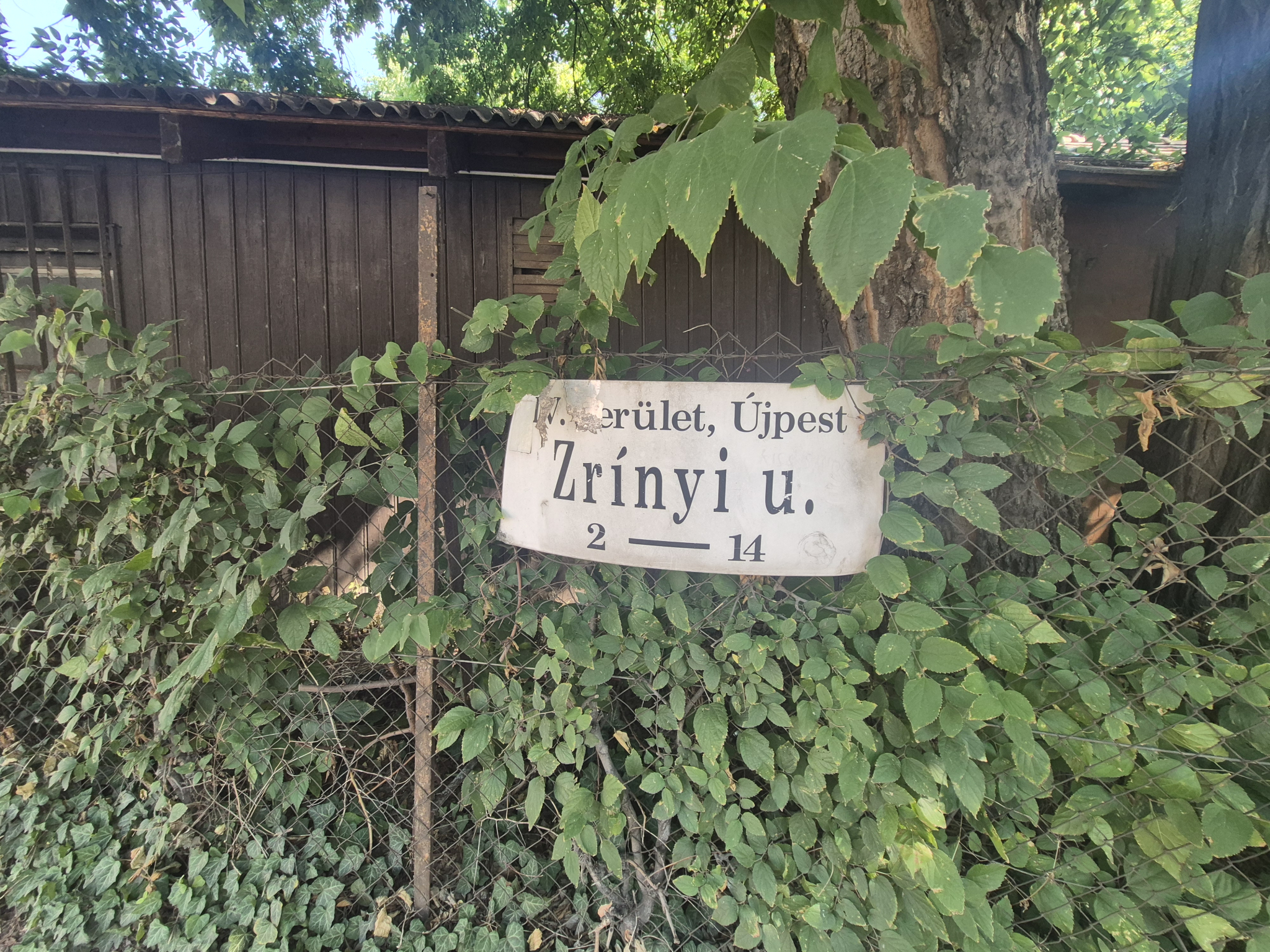 Az utcanévtábla nagyon kopott, pár helyen lejött a felirat.