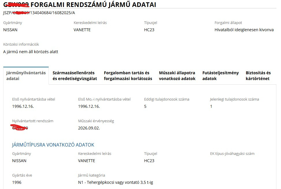 Forgalomból kivont Nissan Vanette parkol a pesterzsébeti Jókai Mór utcában.