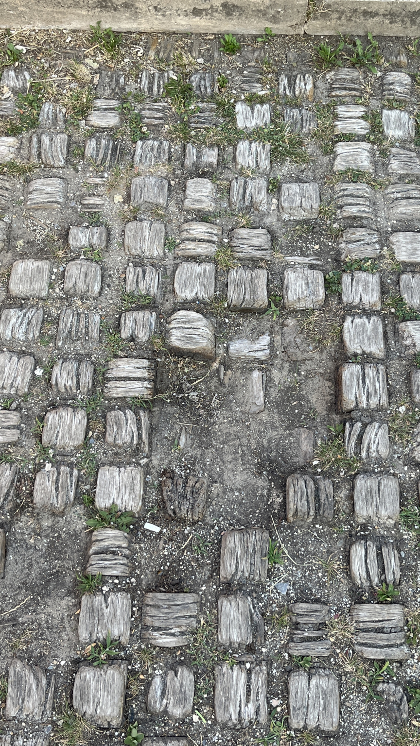 A víztározó épülete körül a fakockákból kirakott járólapok teljesen elkorhadtak, elhasználódtak. Mivel balesetveszélyes, ésszerű lenne feltölteni kavicsokkal, forgácscsal, akármivel.