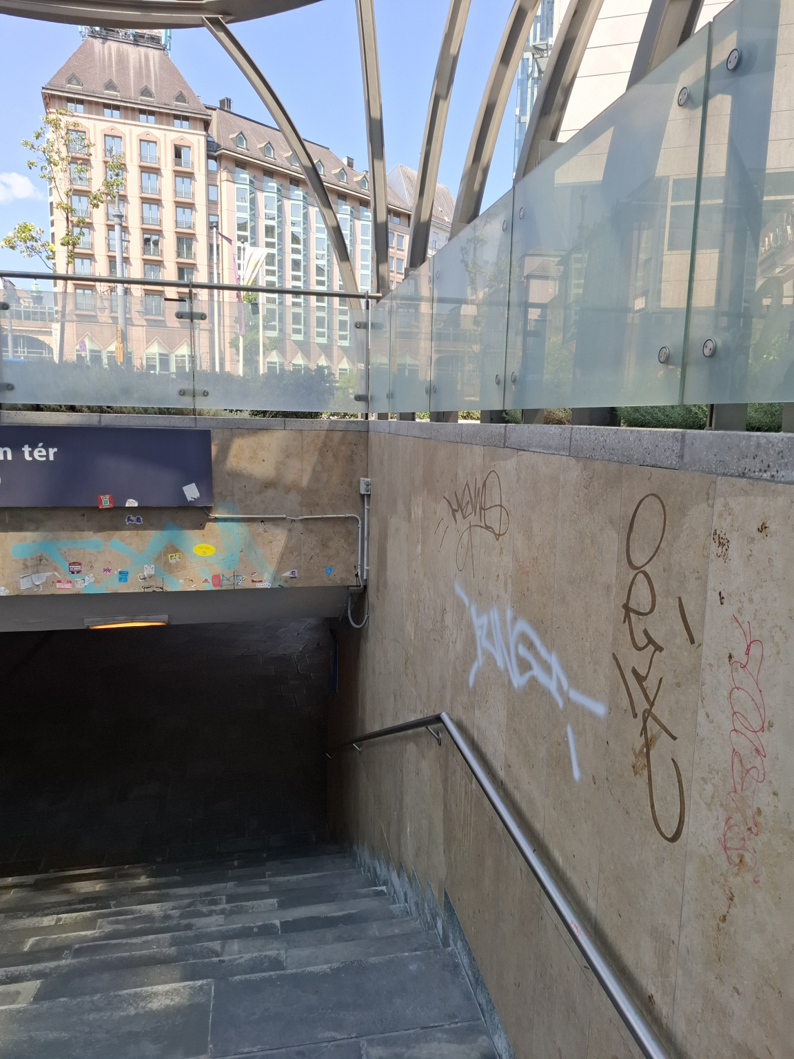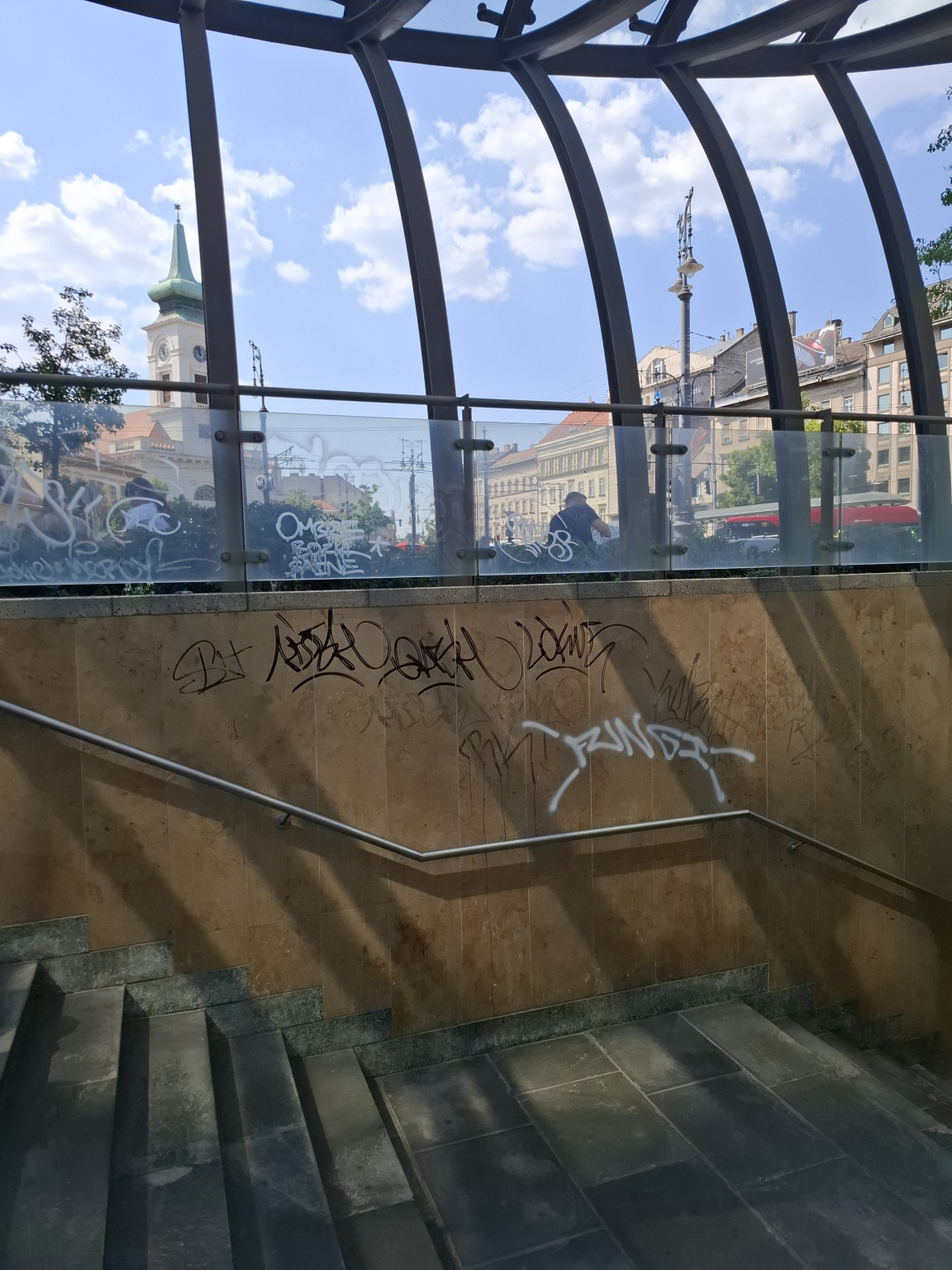 Kálvin tér aluljáró, a Szabó Ervin tér feljárónal össze van firkálva, matricázva. Kérem végezzenek takarítást!
