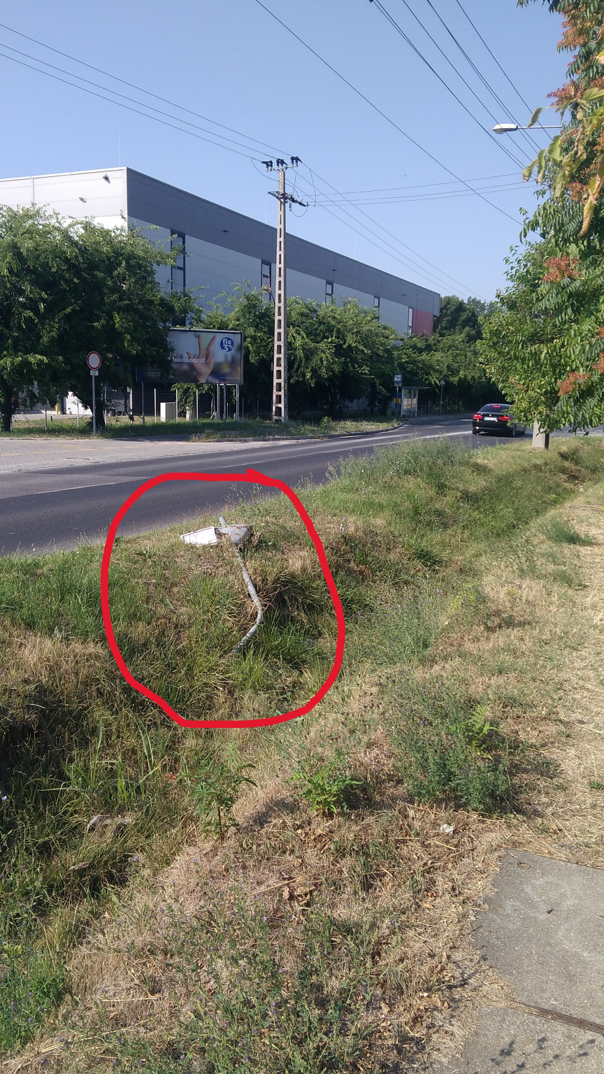 Kérem az illetékest, hogy a képen látható kidöntött táblát helyreállítani szíveskedjenek!