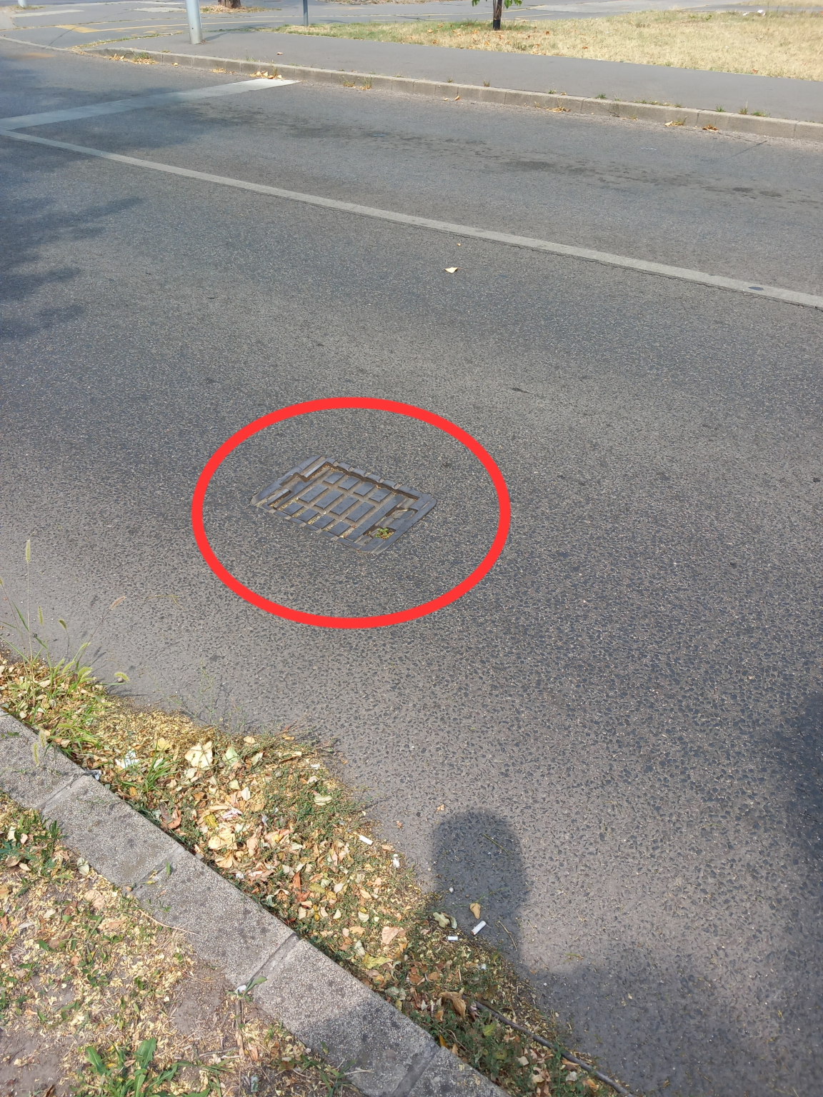 A Gergely utcai 85 szám alatt a Vízműnek tűzcsap fedlap lassan megsüllyedés látható, ami kocsik alatt besülyedése lehet, illetve életveszélyessé válhat