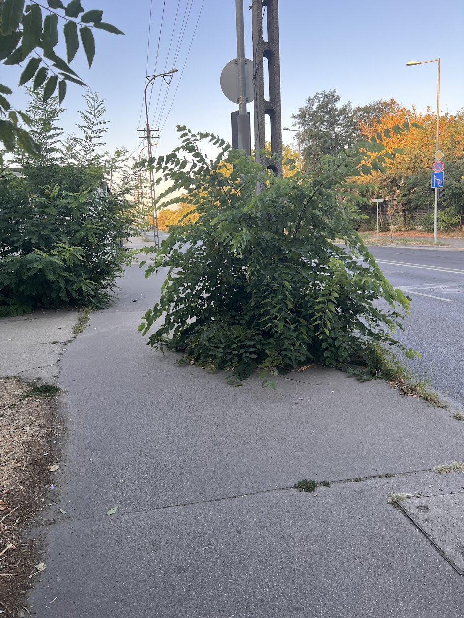Az erre személygépkocsival közlekedők általában a lámpa színétől függetlenül hajtanak át a zebrán, ezért hasznos lenne eme zöldség eltávolítása. Köszönettel!