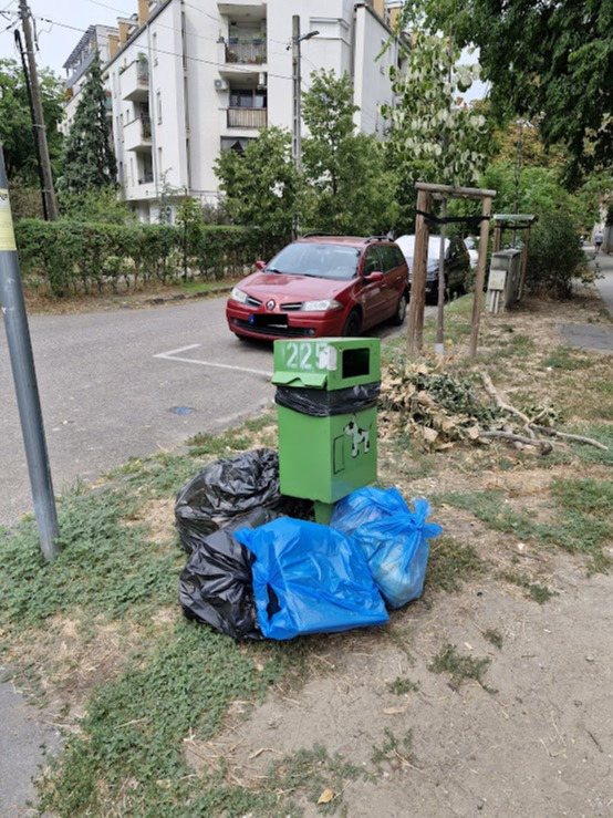 Azonban ez a sarok szemétmágnesként működik. Mindenfajta zsákos kommunális és zöldhulladékot is állandóan ideraknak. Ezek hosszú hetekig itt virítanak és tovább vonzzák a szemetelőket. Kérjük, hogy gyakrabban takarítsák el az idehordott szemetet.
