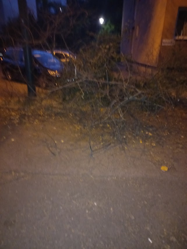 Kidőlt fa a XIV. ker. Szentmihályi út 33. szám előtt. De már hetek óta.