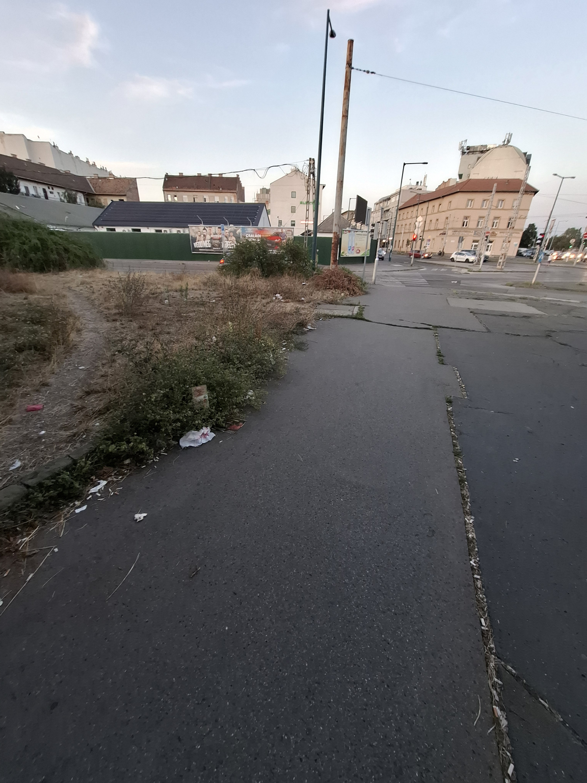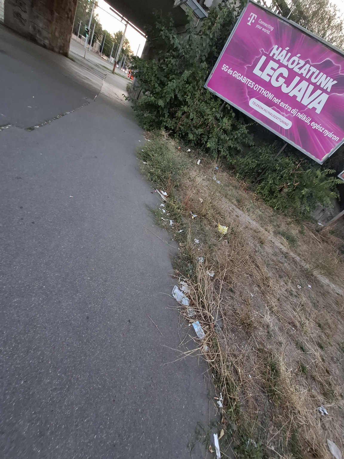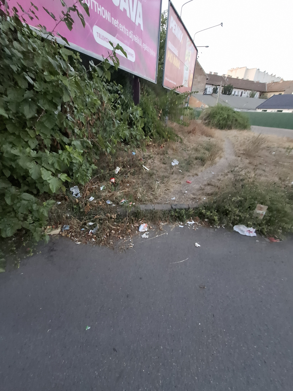 A járda menti sáv nagyon szemetea. Kérem gyűjtsék össze a szemetet!
