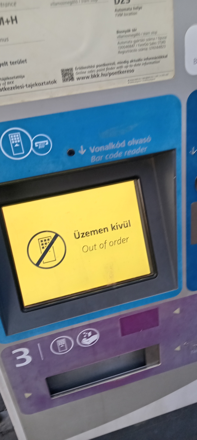 Bosnyák téren található 2 db jegy és bérlet automaták nem működnek.Szeretném kérni a javításukat!