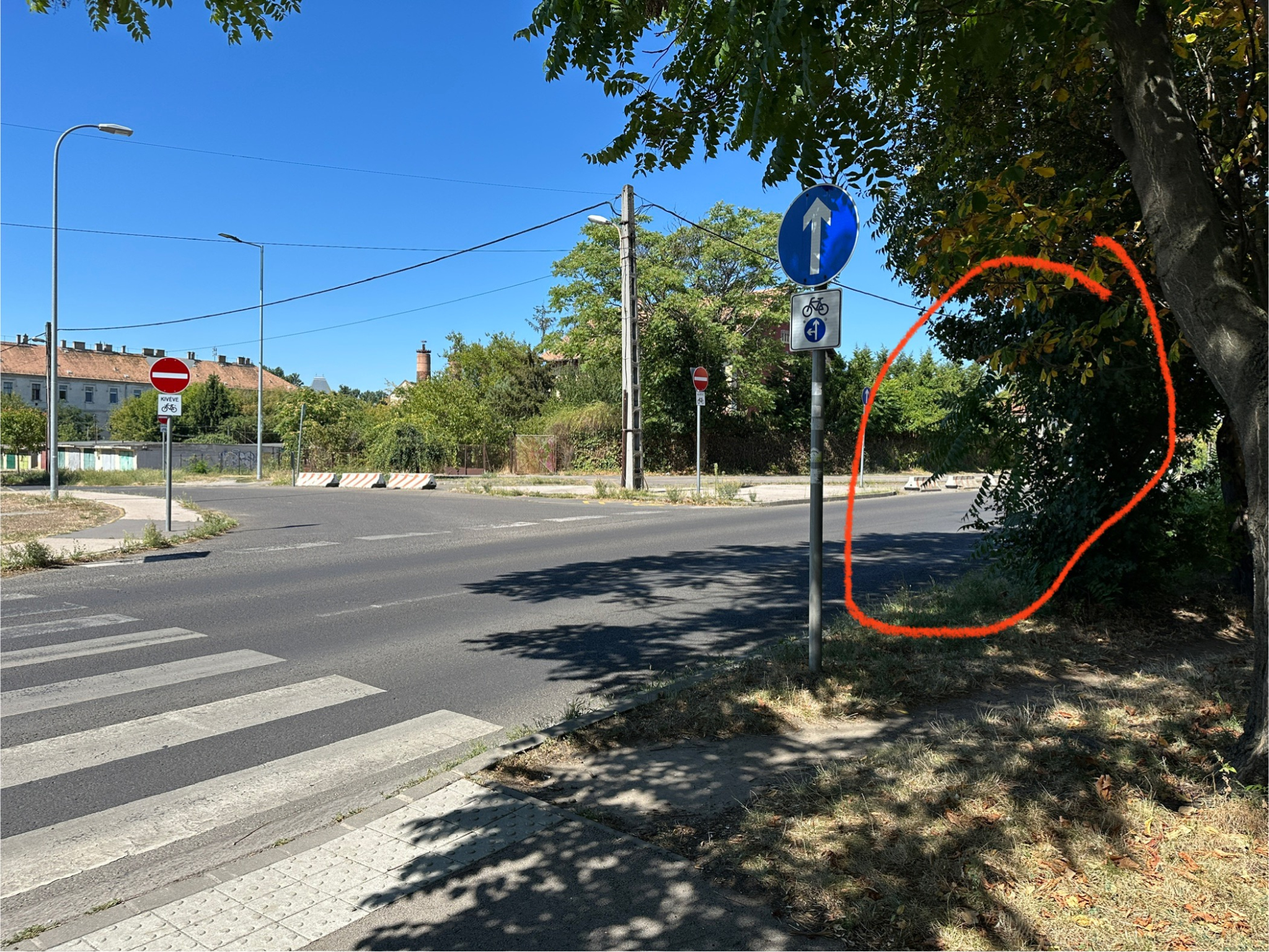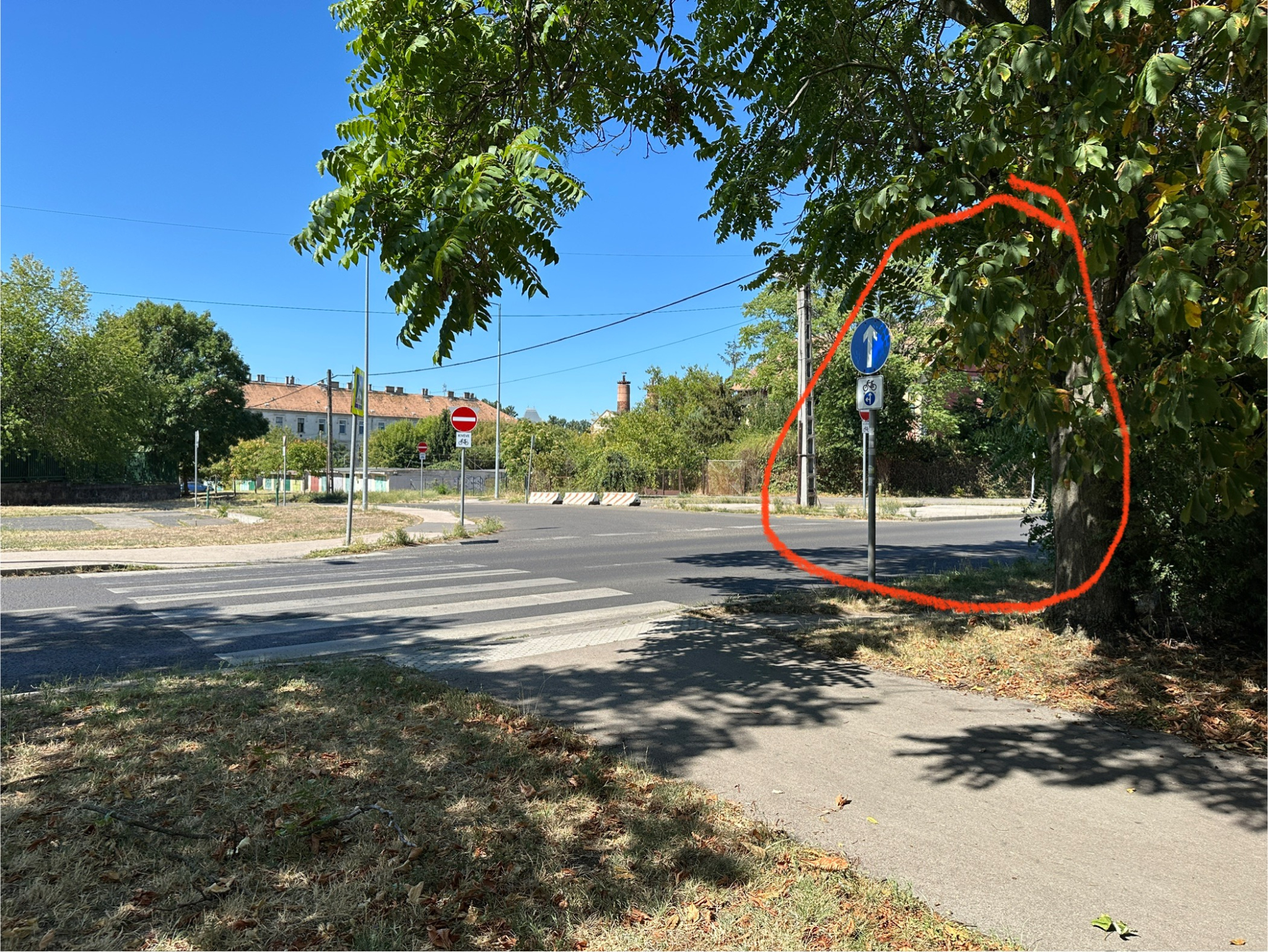 A fák/bokrok alsó, oldalsó ágai a szabad belátást nagyban takarják, emiatt az autósok későn veszik észre a gyalogátkelőn a gyalogosokat.