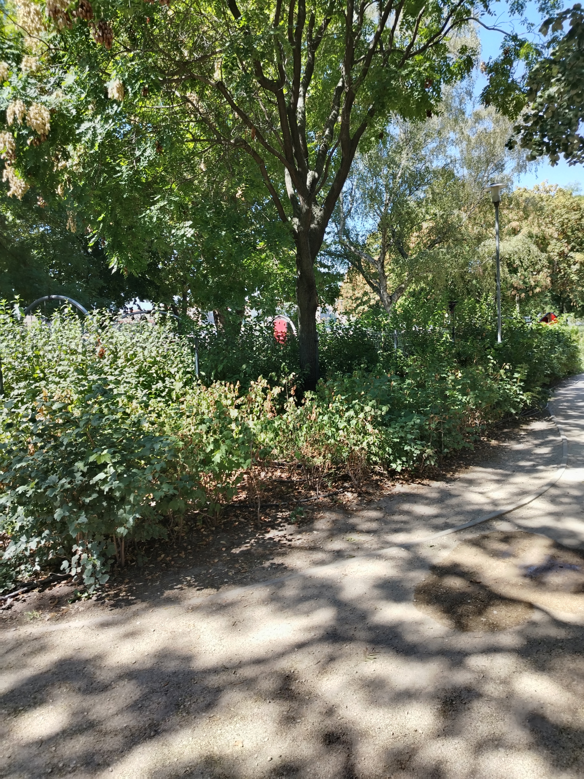 Ismeretlen férfi vas építőelemeket helyezett el a Nehru parti játszótéren, a kerítés és a bokrok között, a Pavilon bár melletti bejárattól jobbra (északra). A képeken alig látszik, de elég sok dolgot bedobált.