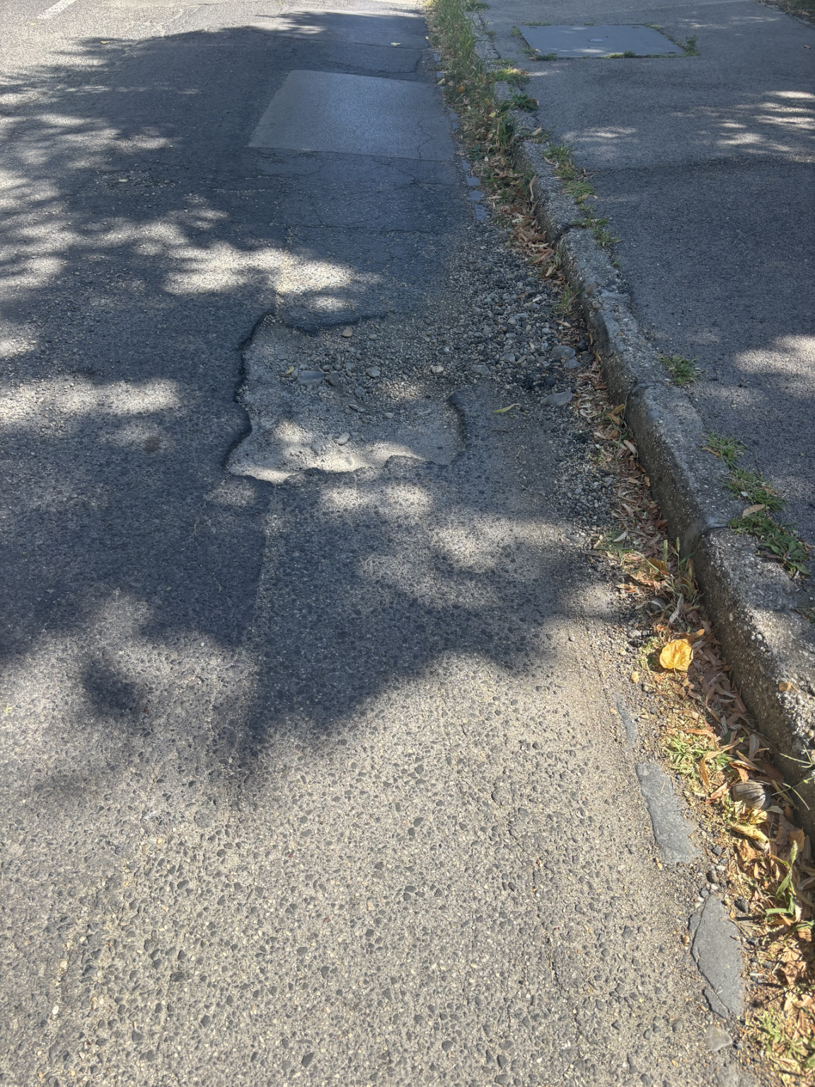 Az út lassan járhatatlan, mert annyi a kátyú! 1184 Építő utca 16/B