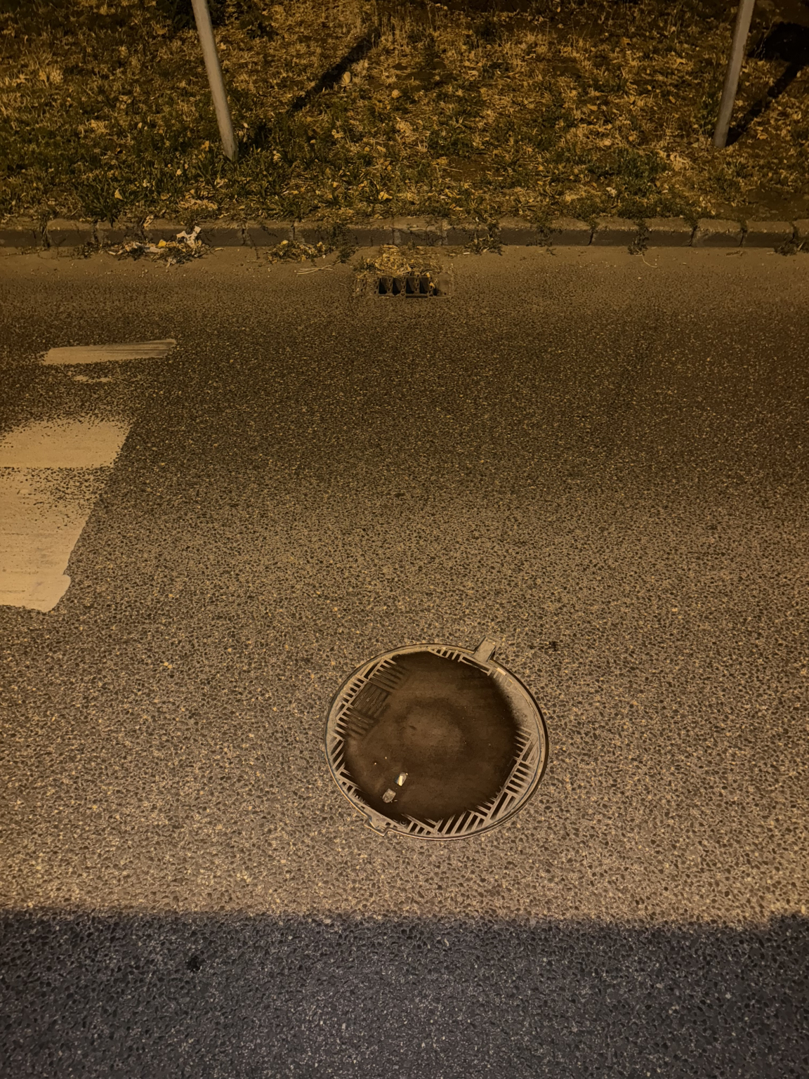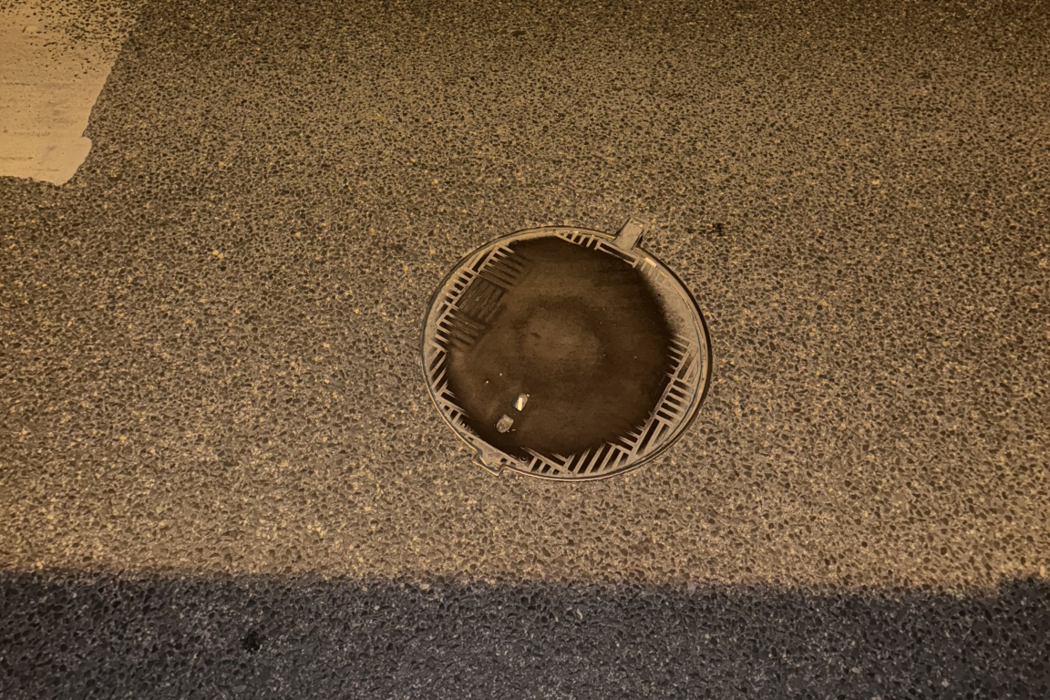Csatorna aknafedlap besüllyesve, illetve hangos csattogás hallható áthaladáskor.