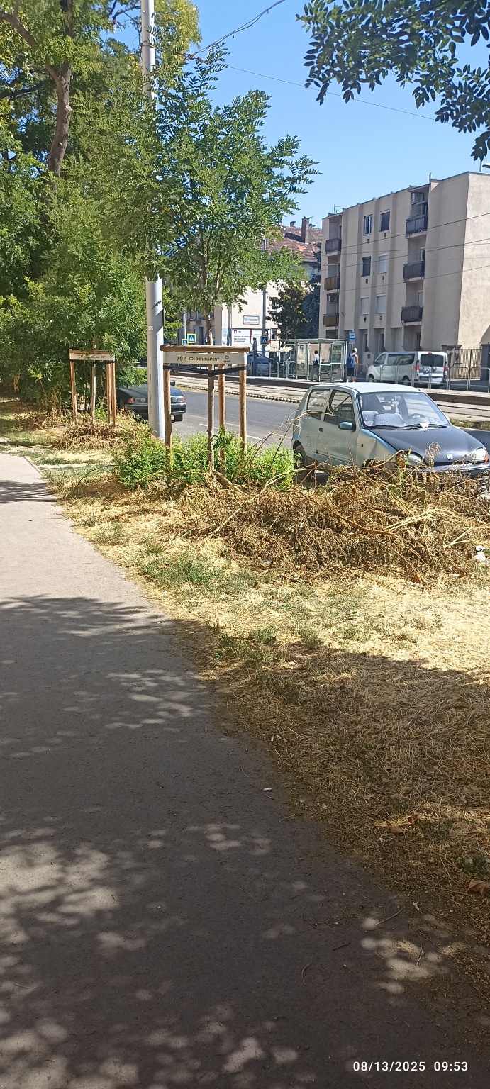 A Fehérvári út 135-147 sz. közti szakaszon (a Kalotaszeg utcai zebra után kifelé menet a jobb oldalon) hetek óta ott hever az út menti fák tövében a nyesedék a fák metszése után.