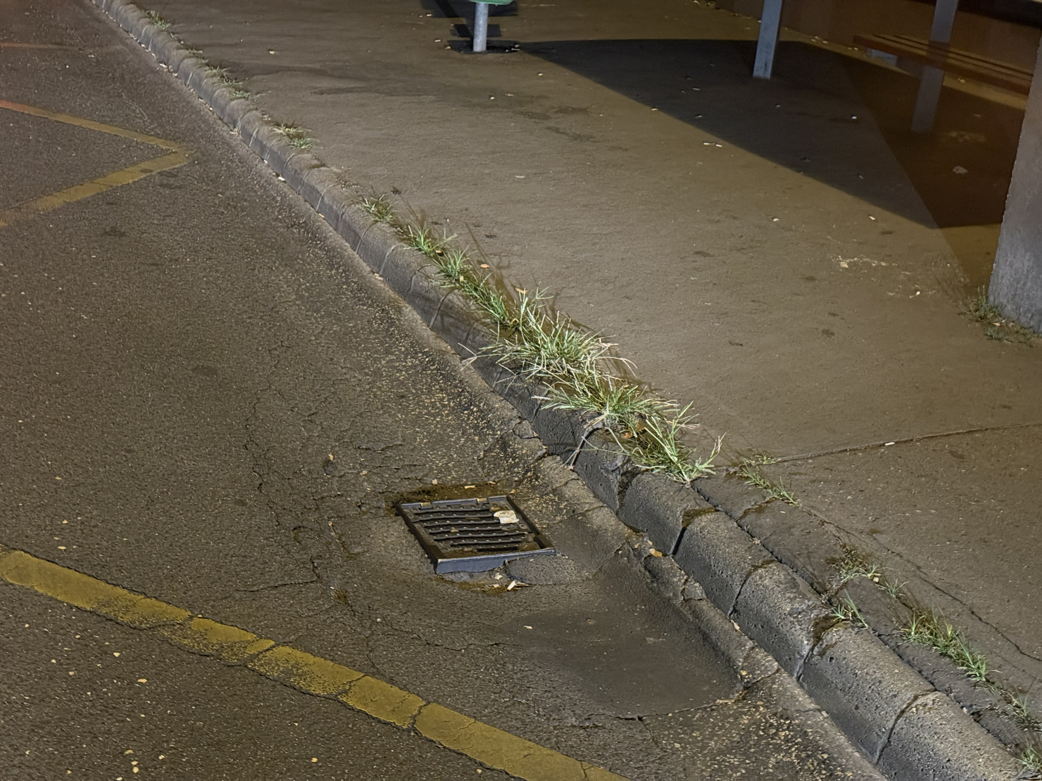 Esőelvezető csatornafedlap besüllyedve, csattog, mély.
