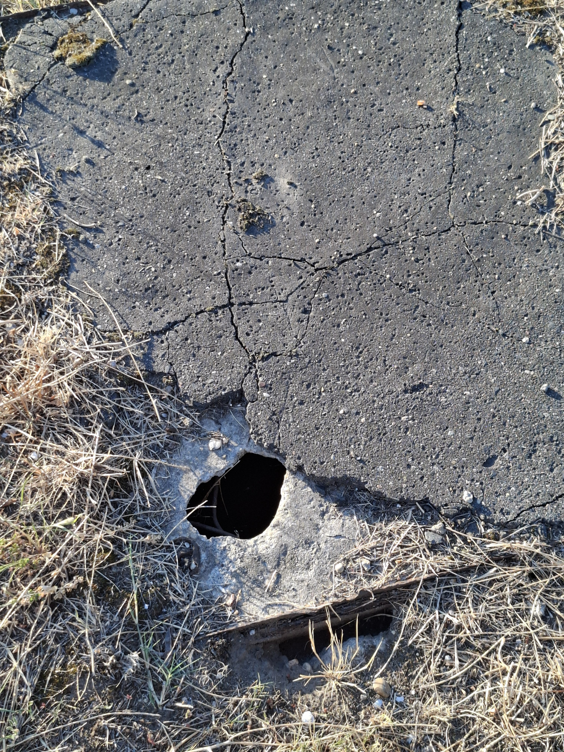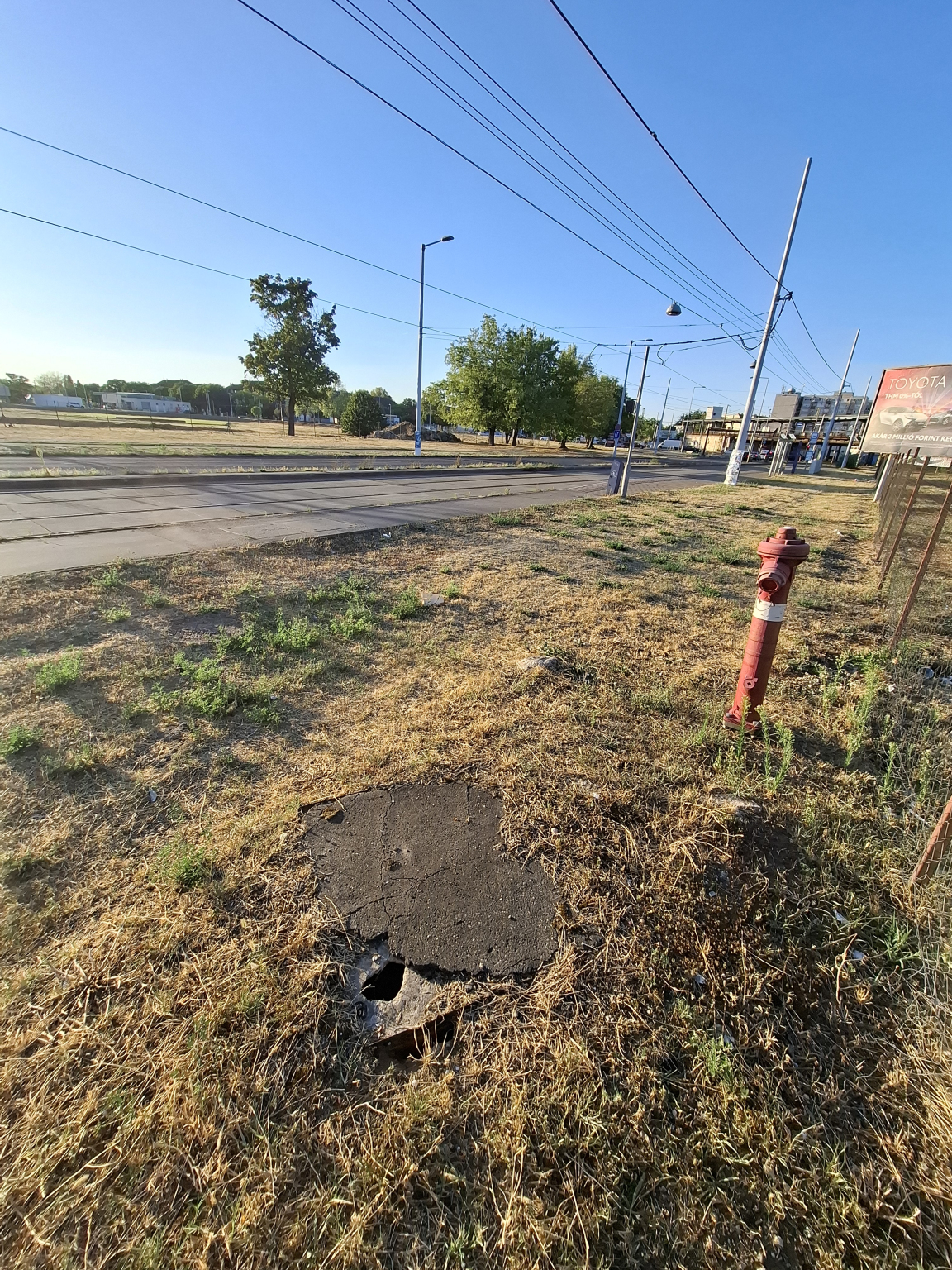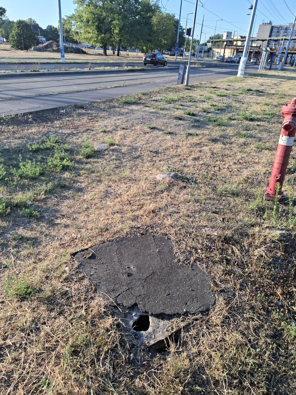 Kőbánya alsó villamosmegállója mellett, a zöldterületen, (szemben a Mázsa térrel) egy beépítetlen telek mellett van egy félrecsúszott fadlap, ami ki is lyukadt. Nincs jelzés rajta, hogy melyik szolgáltatóé lehet és az aknába sem látni bele.