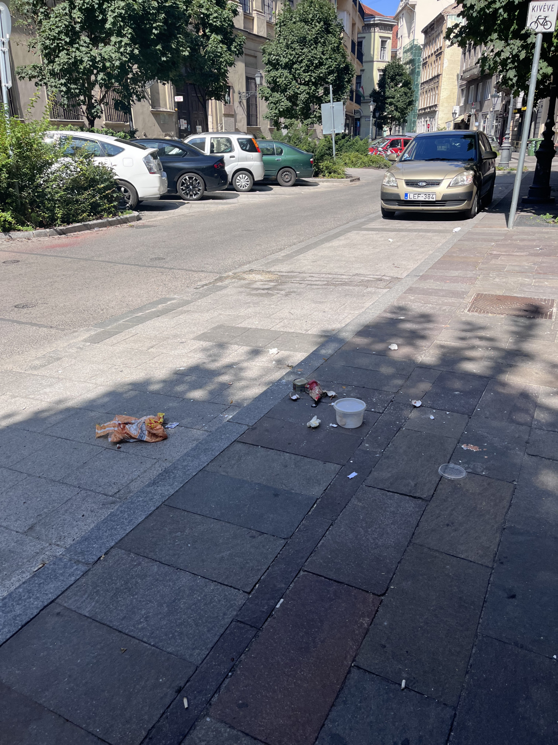 Hosszú ideje a takarítás kimerül abban hogy kiürítik a kukákat (már amikor) de söprés, a csikkek összeszedése, hányás (és/vagy fekália) letakarítása már nem történik meg. Hosszú hónapok óta tart ez a borzalom ami itt lakóként fogad mindennnap mindannyiunkat.