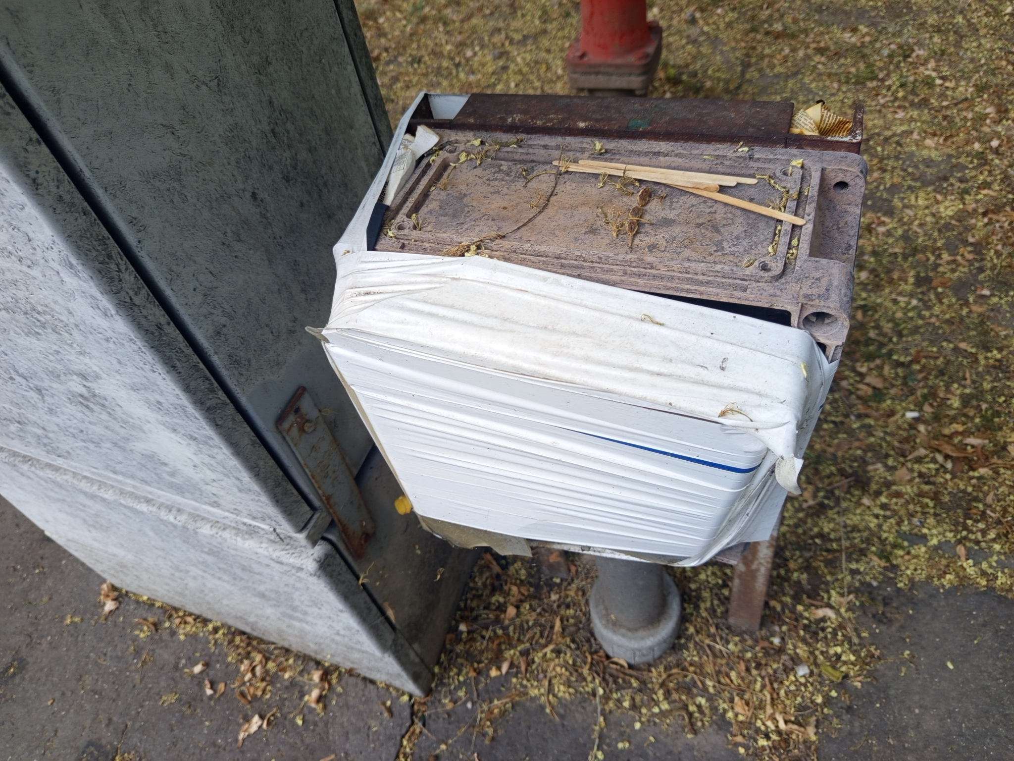 Egy nem szakszerűen elzárt elektromos doboz! Megkérném az illetékest hogy gondoskodjon az elektromos doboz szakszerű elzárásáról mert balesetveszélyes! Előre is köszönöm!