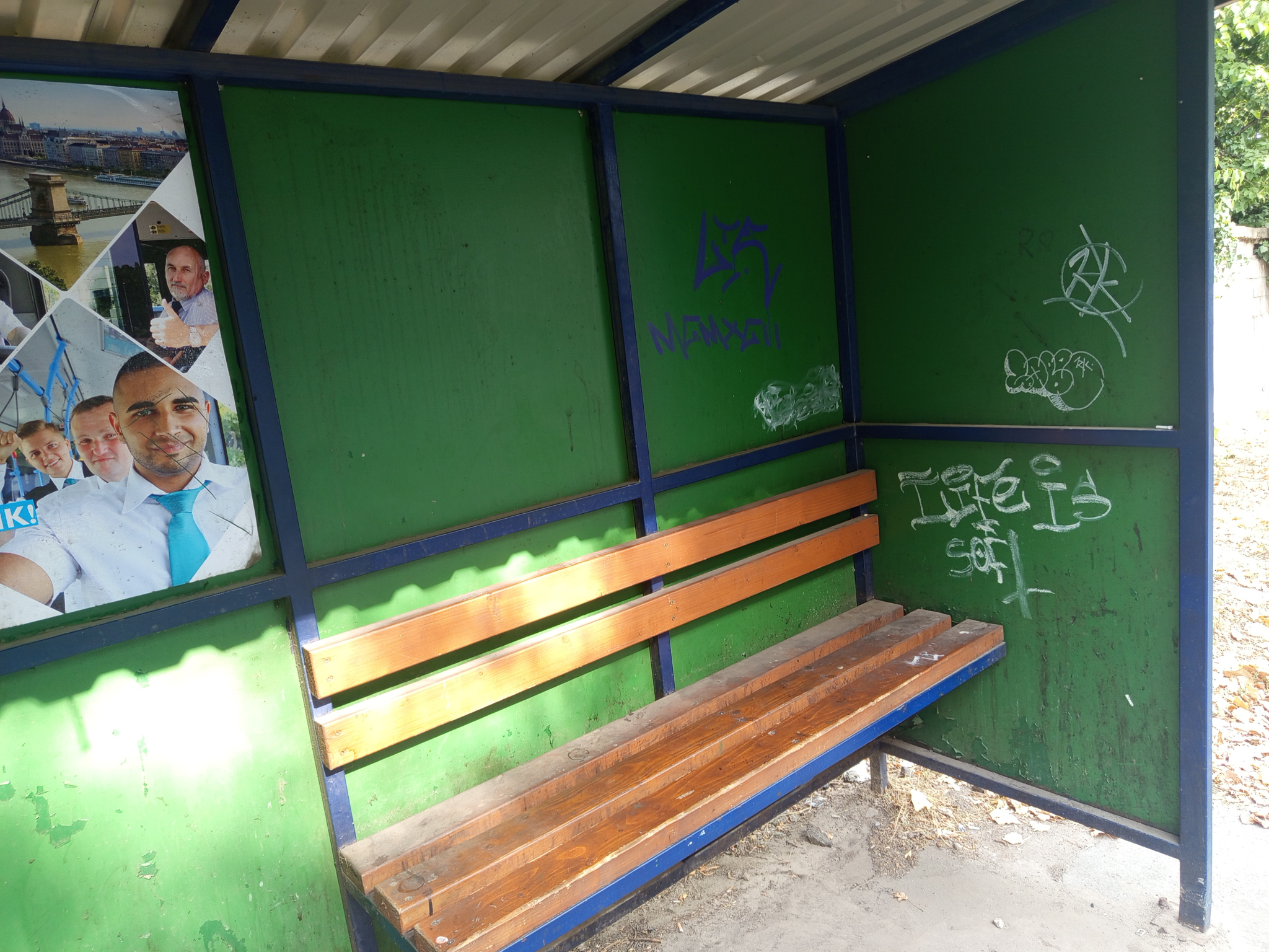 Egy rongálódott és graffitis buszmegálló! Megkérném az illetékest hogy gondoskodjon a probléma megoldásáról! Előre is köszönöm!