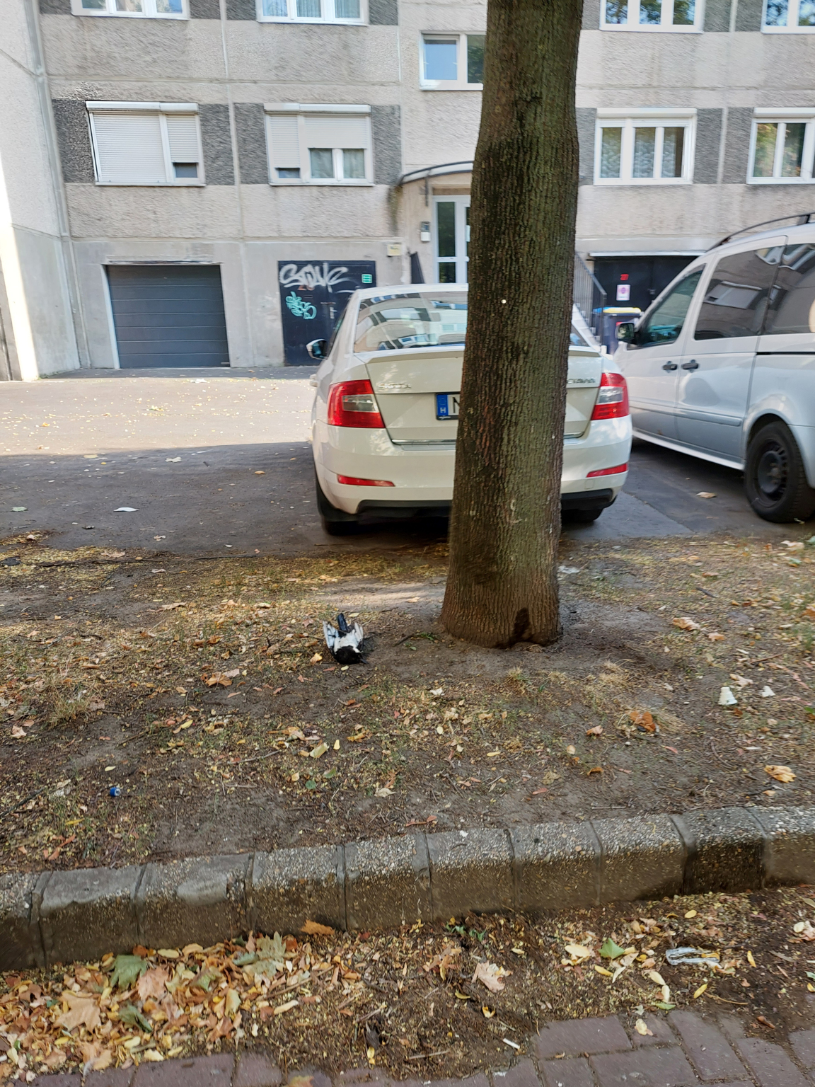 Epusztult madár a Bp. Ormánság utca 19. előtt.