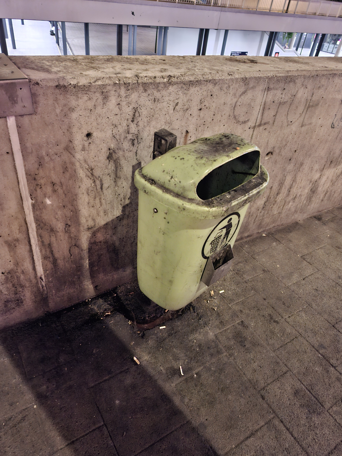 A Keleti pályaudvar buszmegállóban (Keleti oldalában) a szemetes és környéke ragacsos, büdös. Kérem mossák le!