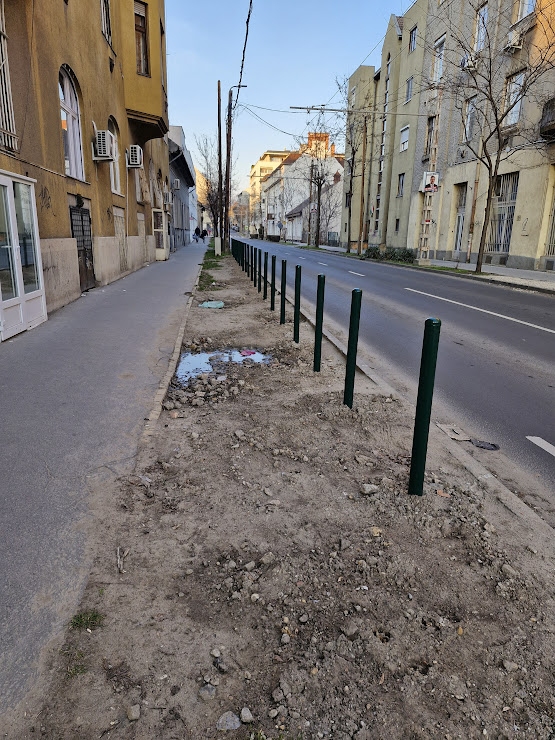 Parkolásgátló oszlopokat fogunk kihelyezni, annak érdekében, hogy megakadályozzuk a parkolást, ezután lehet csak majd zöldítést végezni....