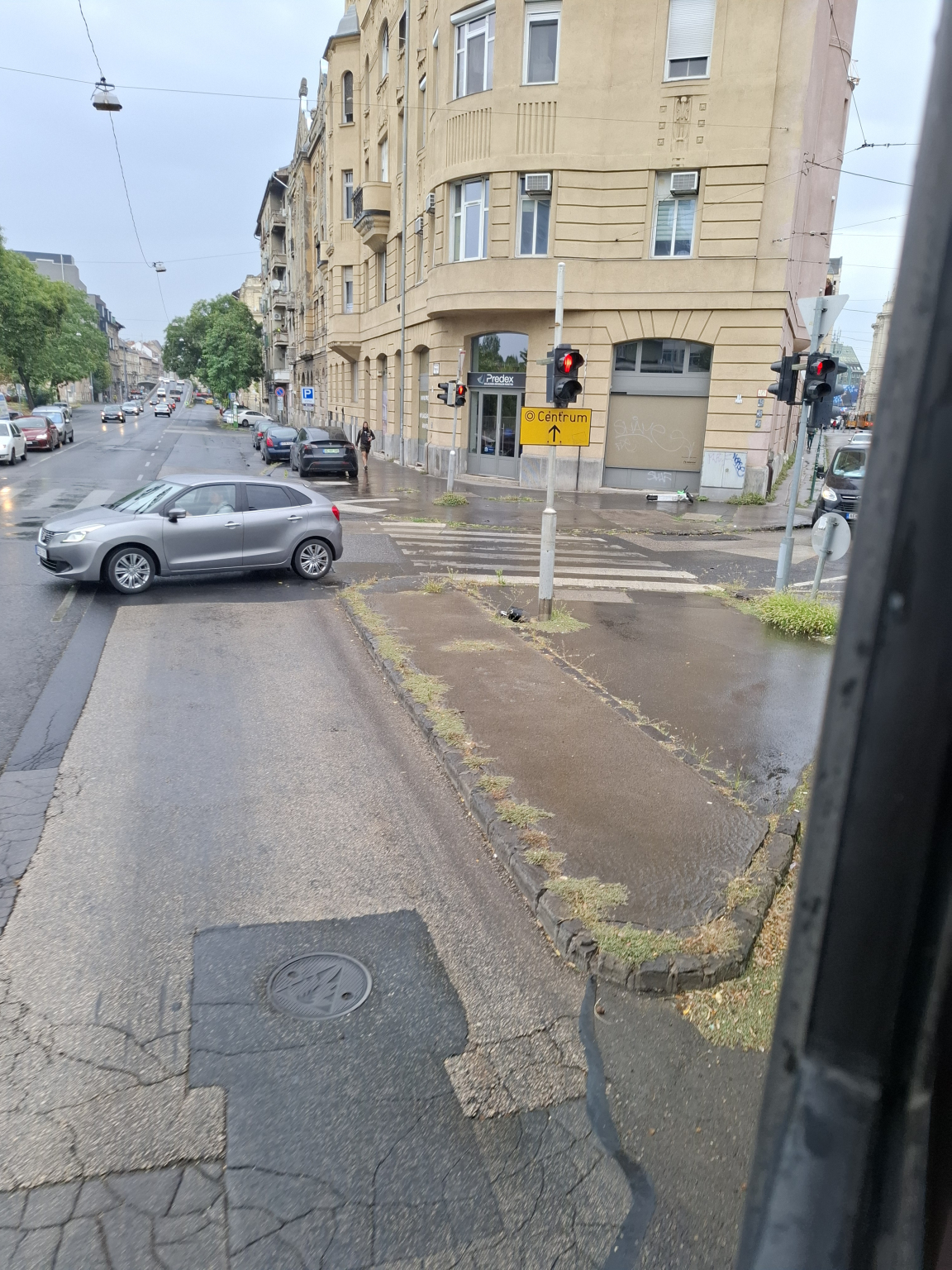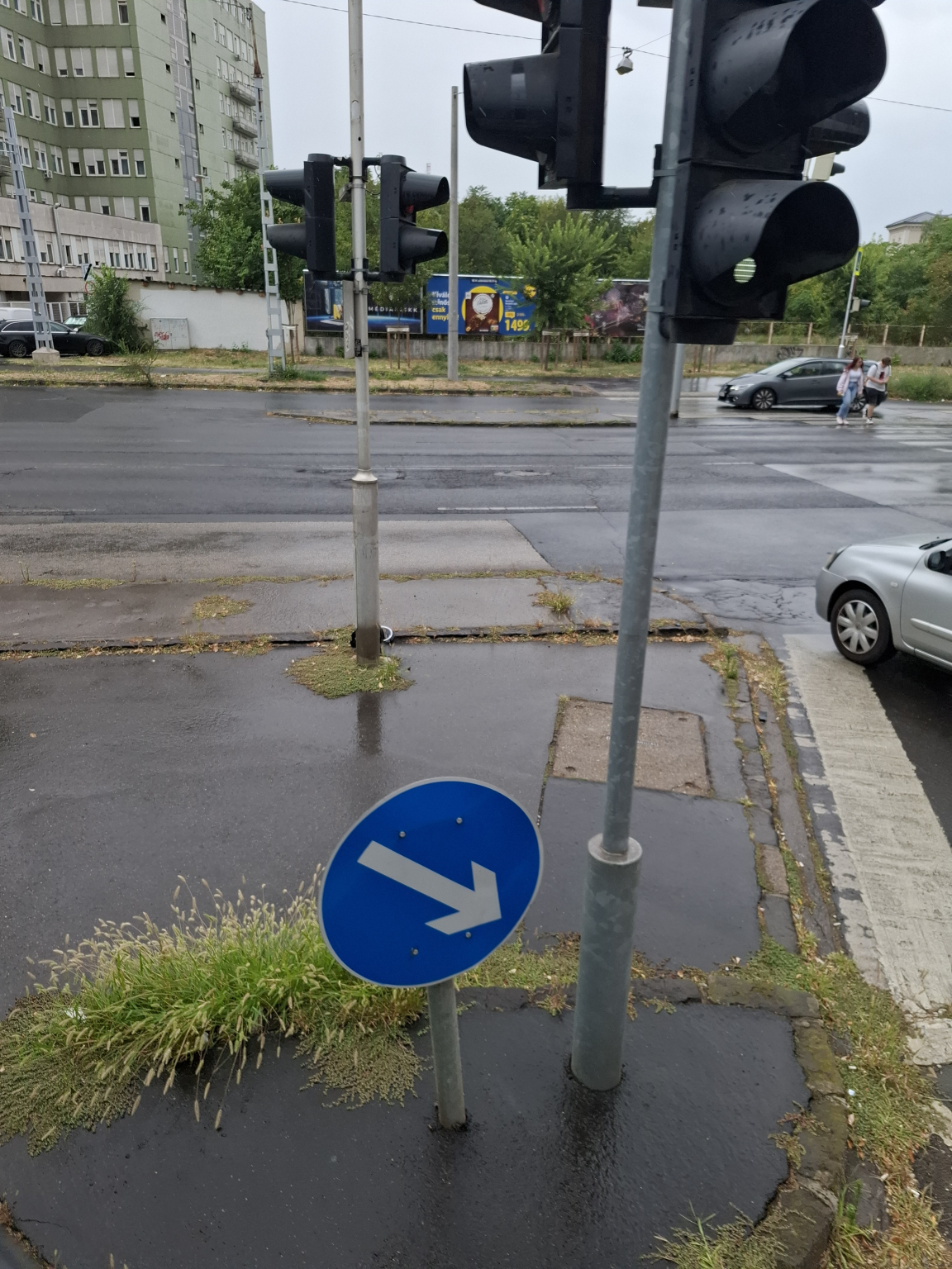 A Festetics éa a Fiumei út kereszteződésében nagyon gazos a gyalogátkelő sziget.