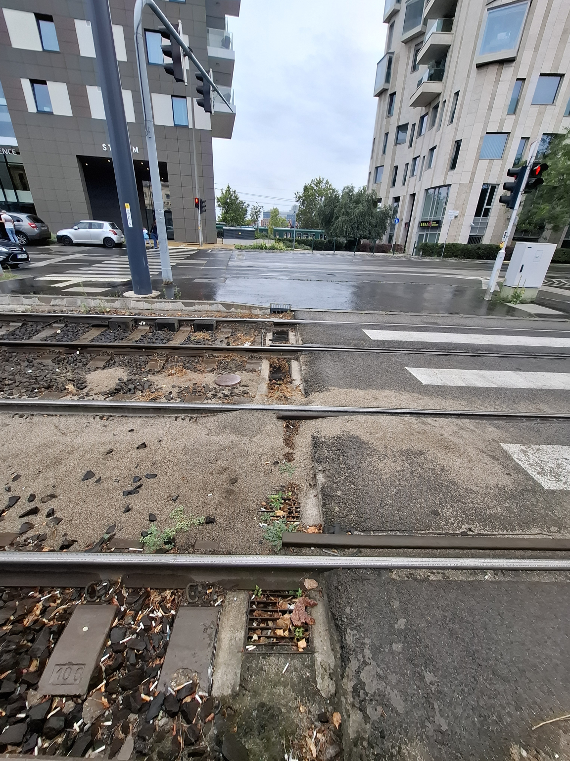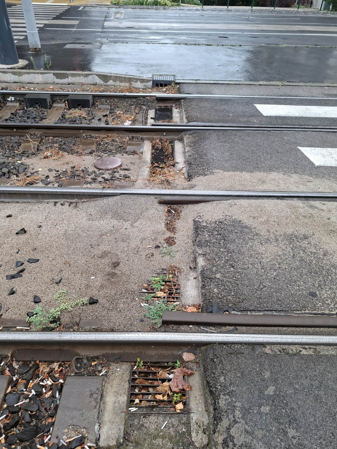 A villamossínek között a vízelvezető teli van homokkal. Kérem takarítsák ki!