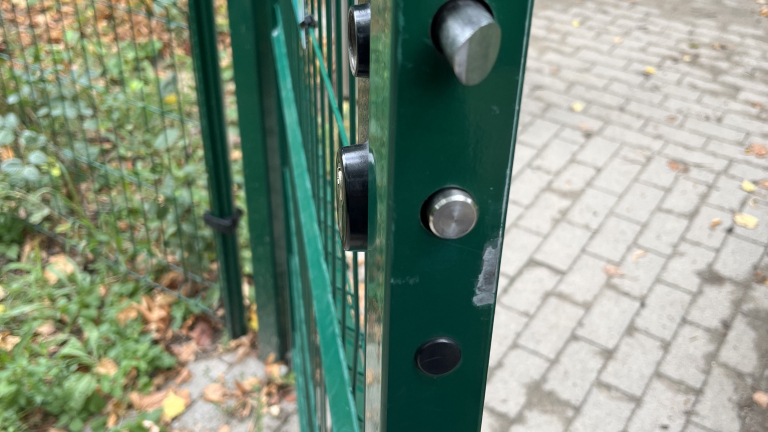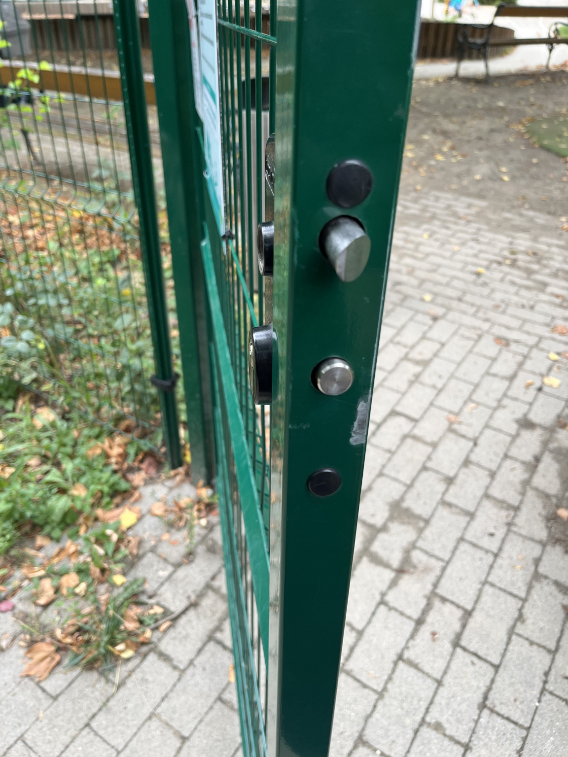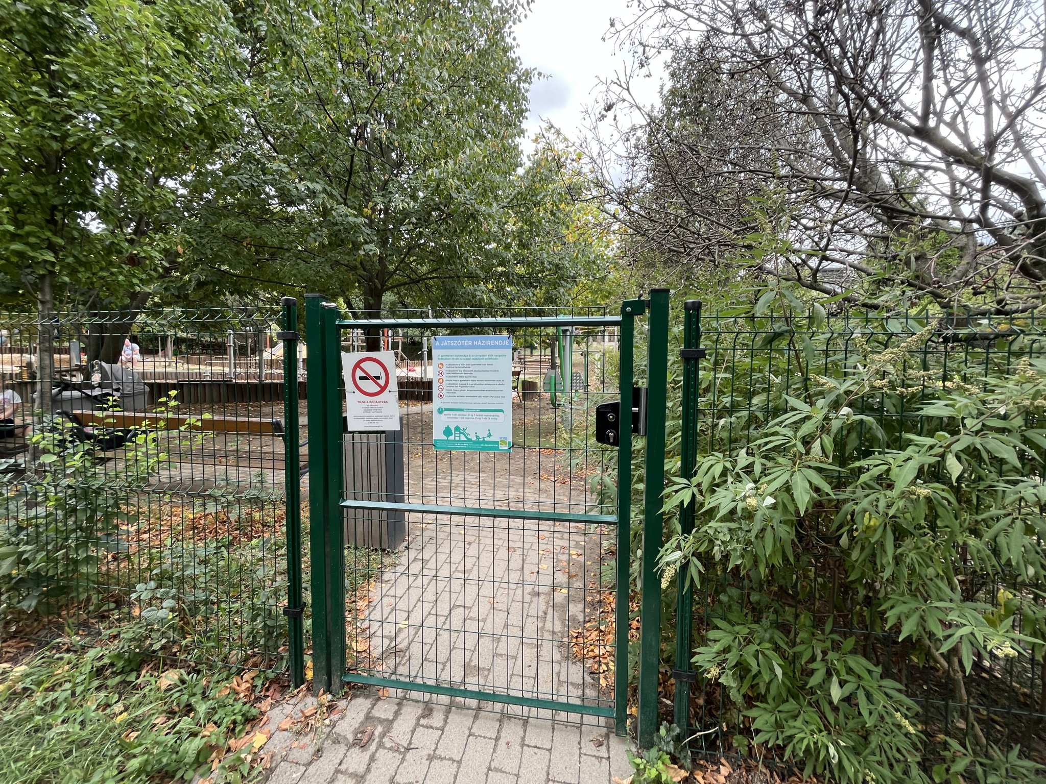 A Pethényi játszótér kerítésének az alsó bejárati ajtajáról hiányzik a kilincs már napok óta.