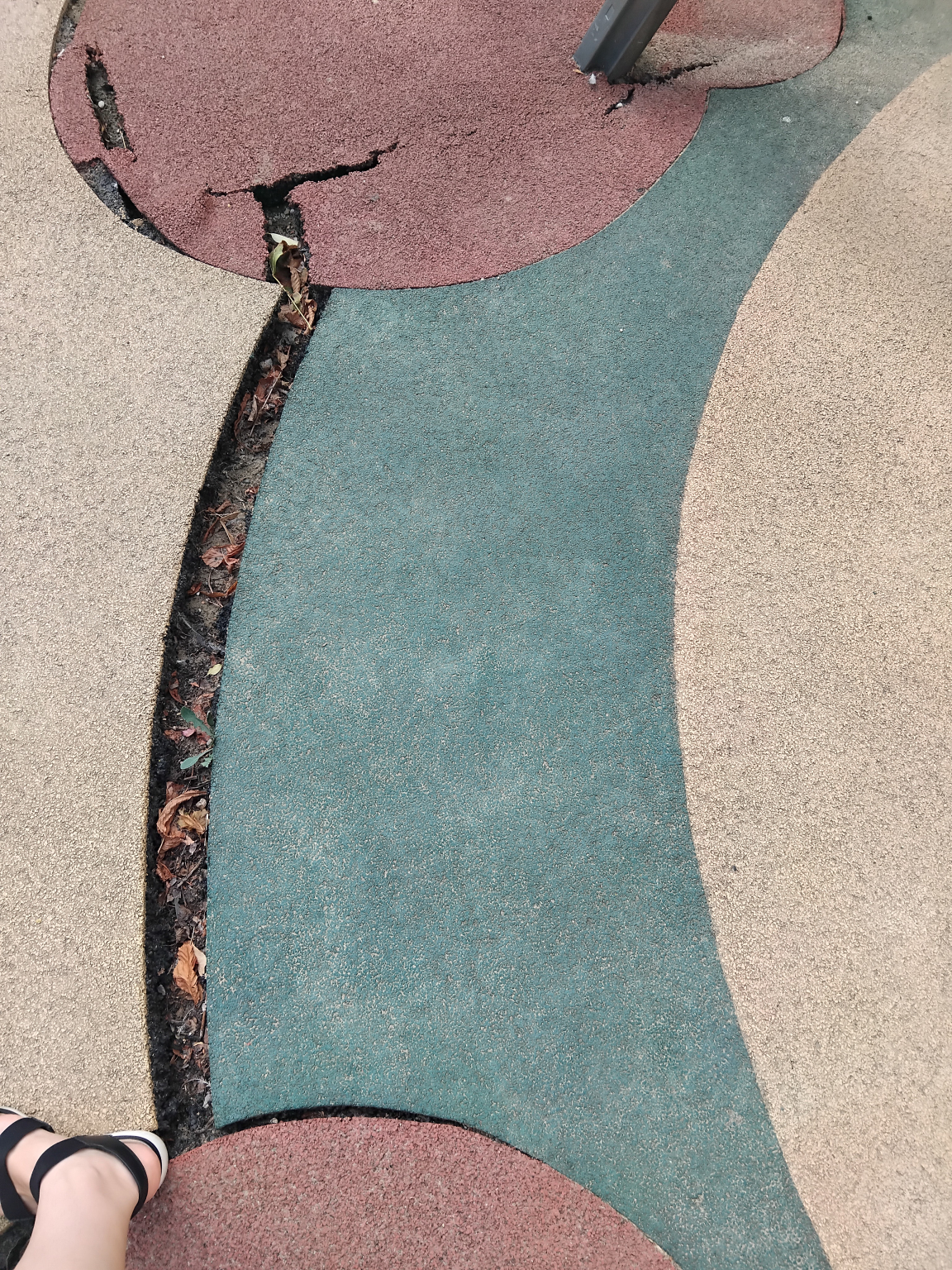 A Honvéd téri játszótér gumiburkolatának hibáit már felmértük, a munkák várhatóan ősz végéig elkészülnek.