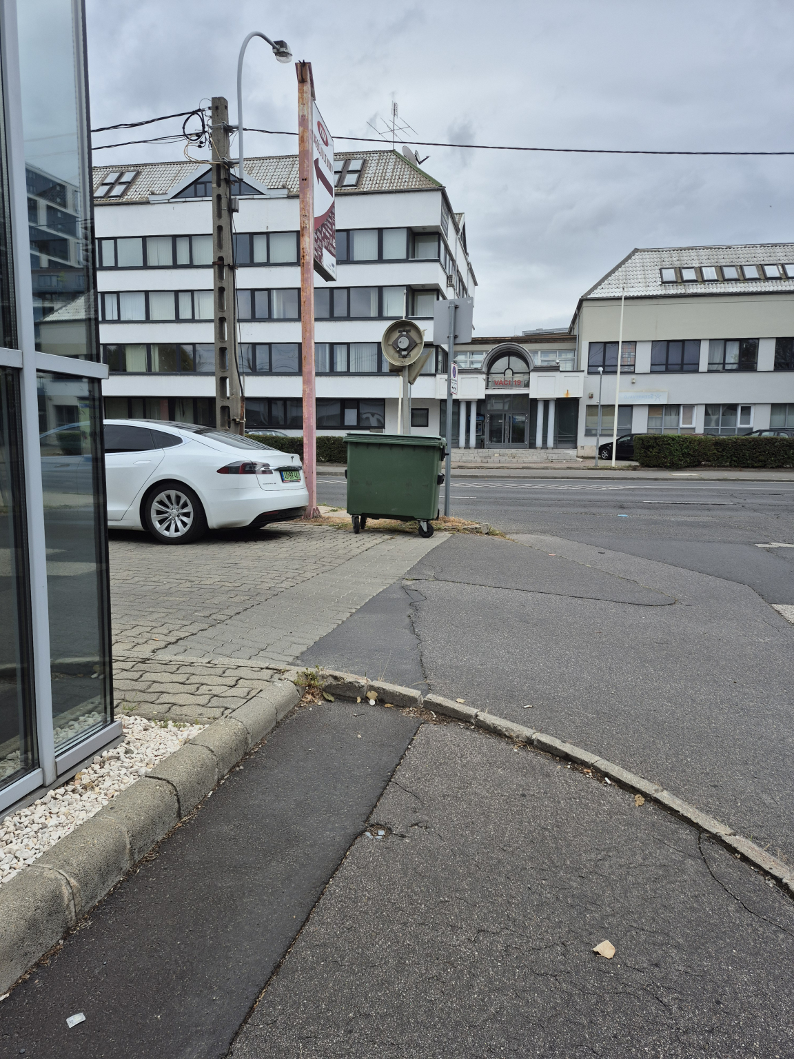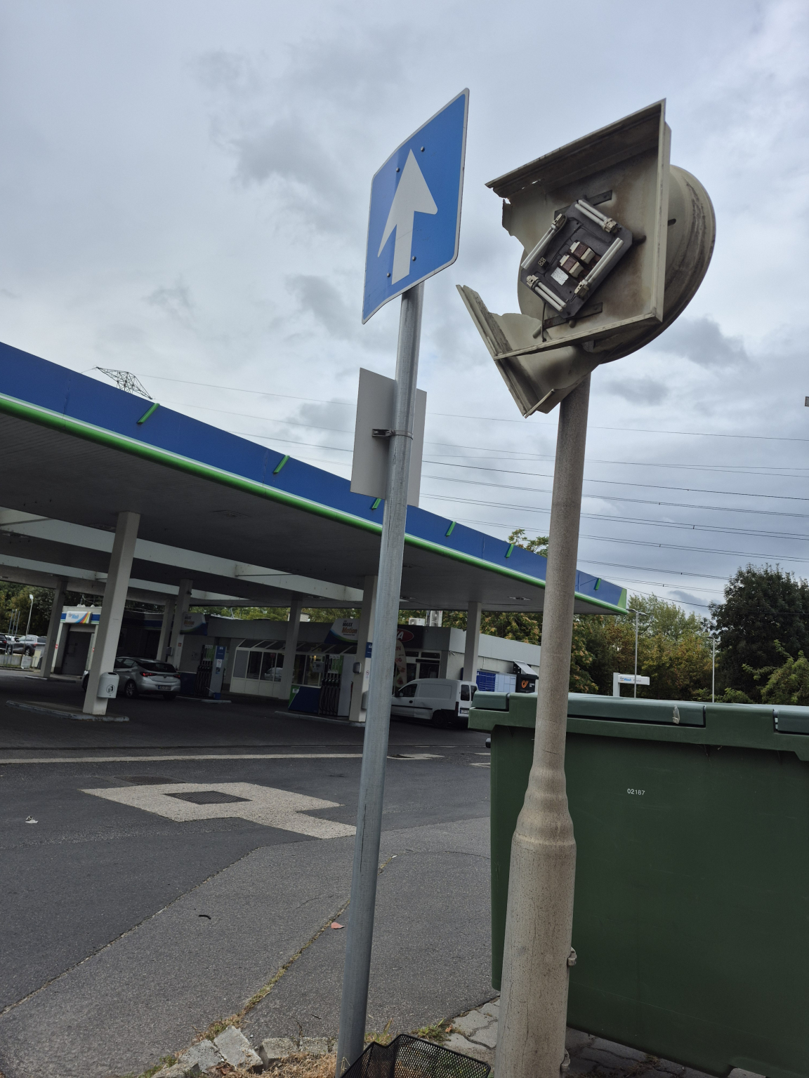 A kút és a Tesla szalon között található a sérült lámpa.