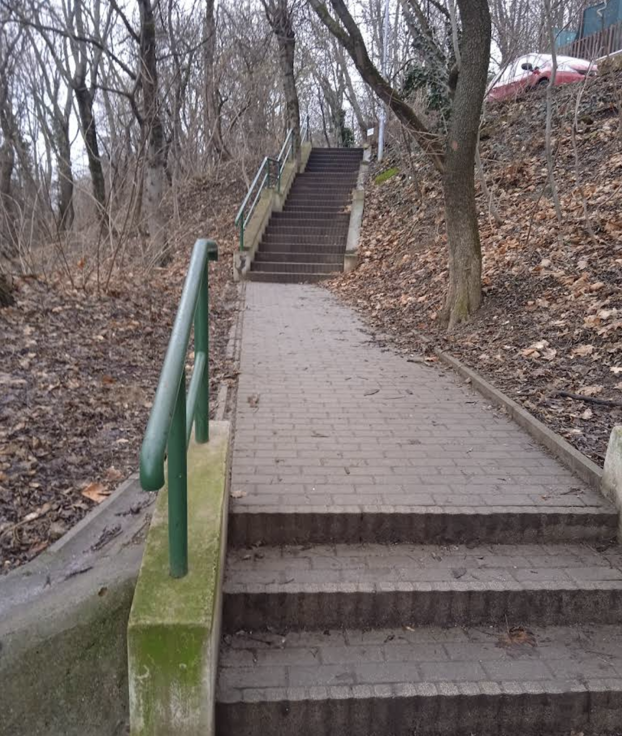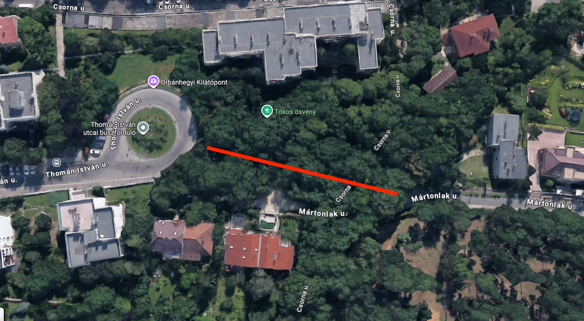 "A Mártonlak utca – Thomán István utca közötti lépcső mellett kitaposott ösvény van, amelynek meredek és 90...