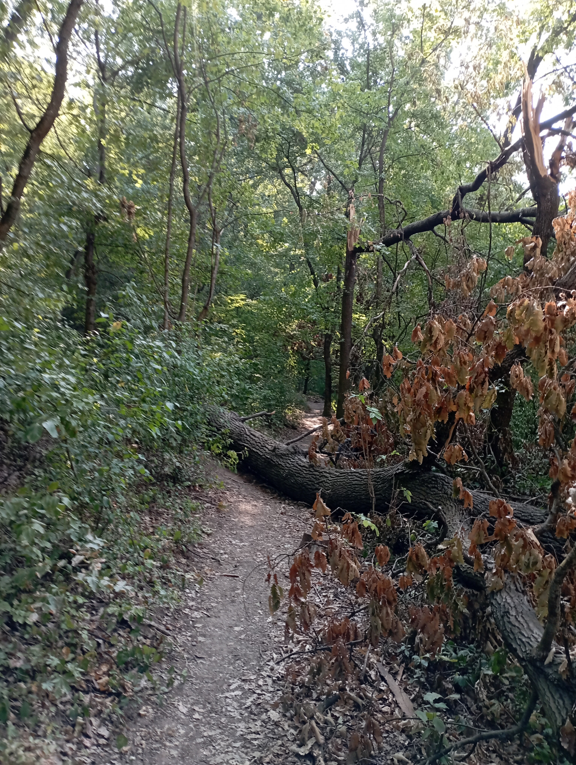 A Pesthidegkút régi temető és Solymár Jegenye-völgy közti (általában kerékpárral is járható) ösvényen több kidőlt fa fekszik keresztbe. A fotók egy hete készültek.