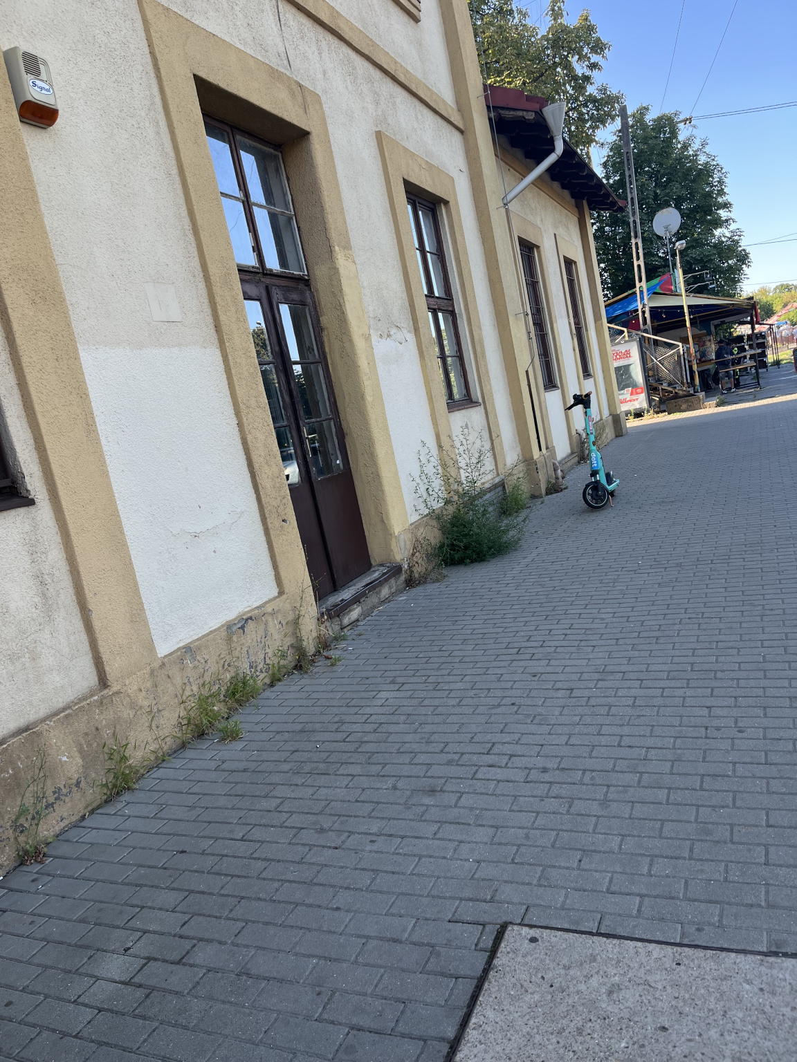 Rákospalota Újpest vasútállomás épülete kőrül gaz, és vashulladék.