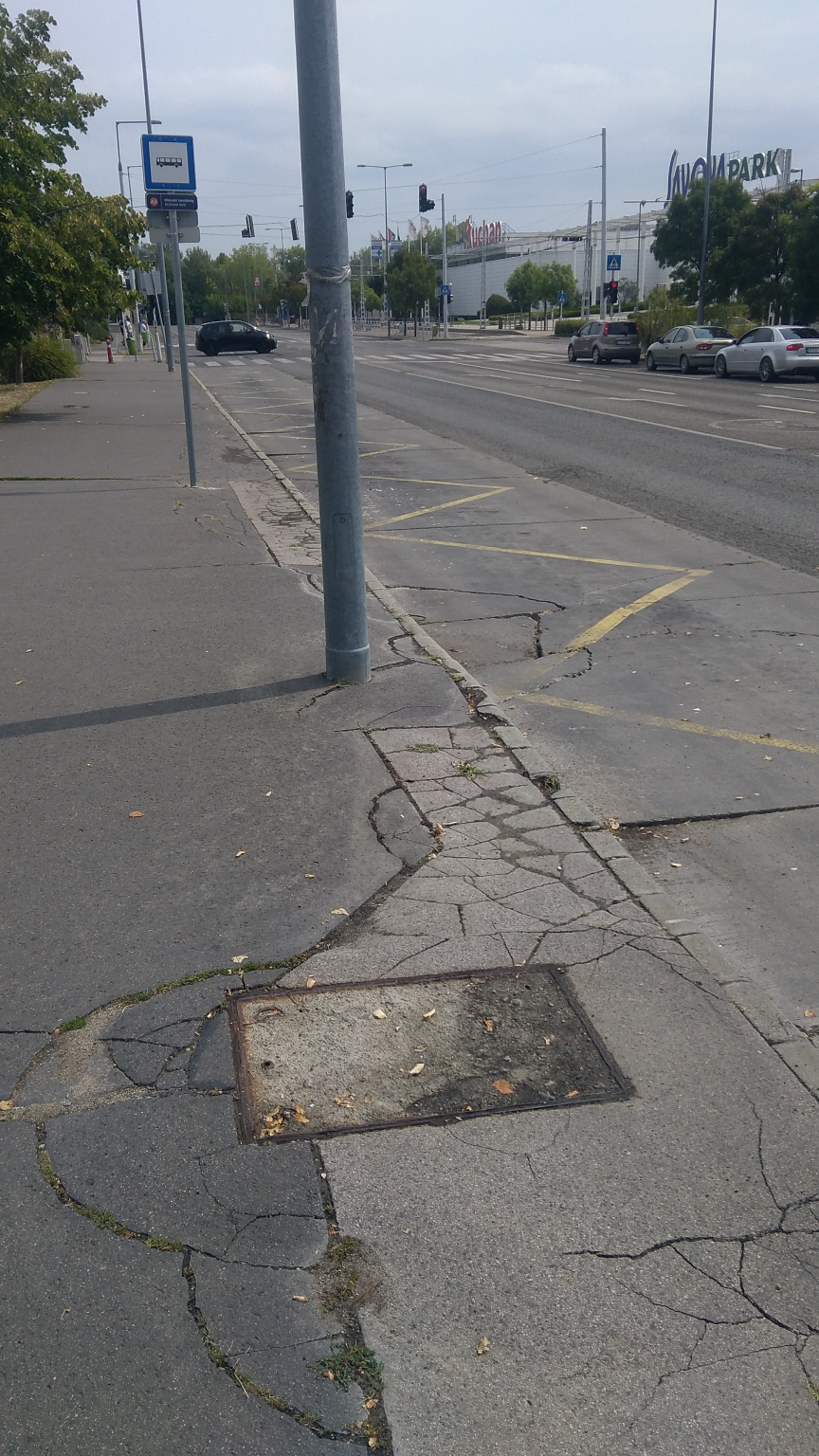 A XI. kerület, Savoya Park buszmegálló járdájában a sérült, kopott fedlap javítását Társaságunk megrendelte.