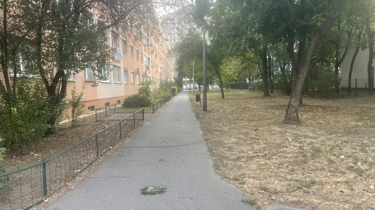 Hiányzik. Poller így a kocsik keresztül hajtanak a járdán pótolni kell a pollent