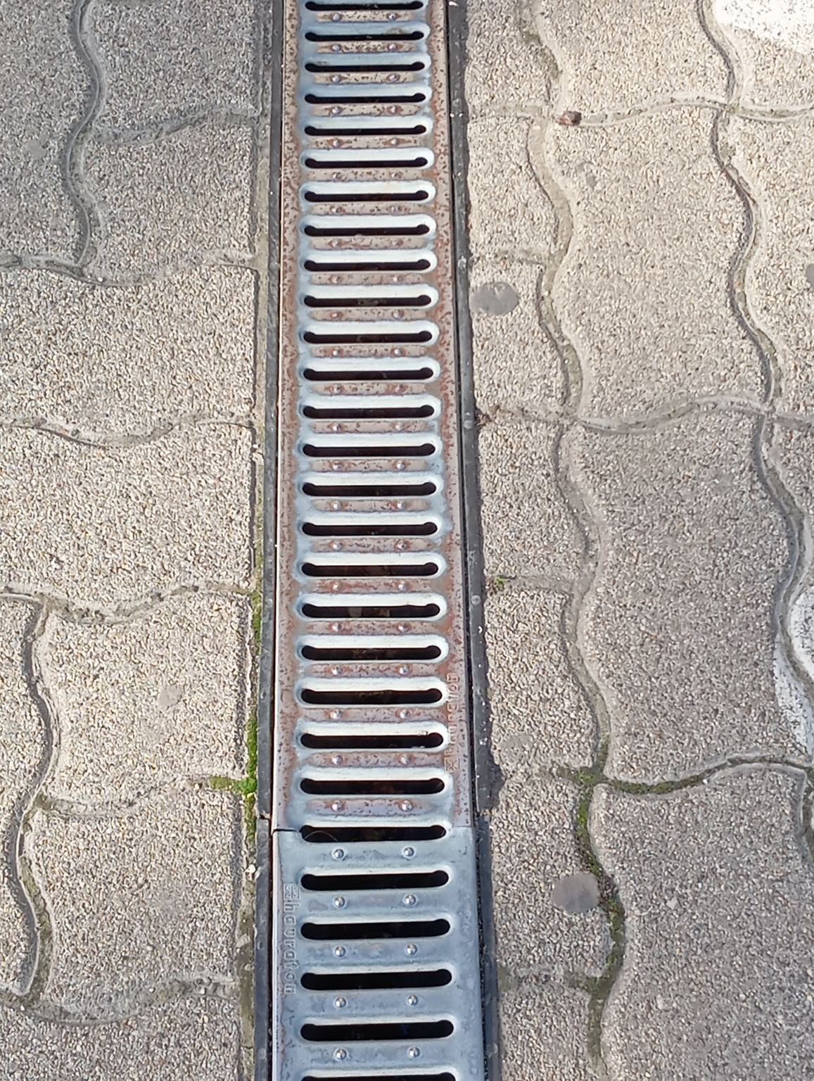 Kérem az illetékest, hogy a képen látható esővíz-elvezető folyókát takarítsák ki!