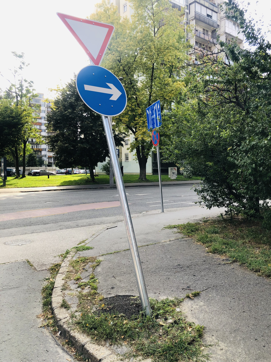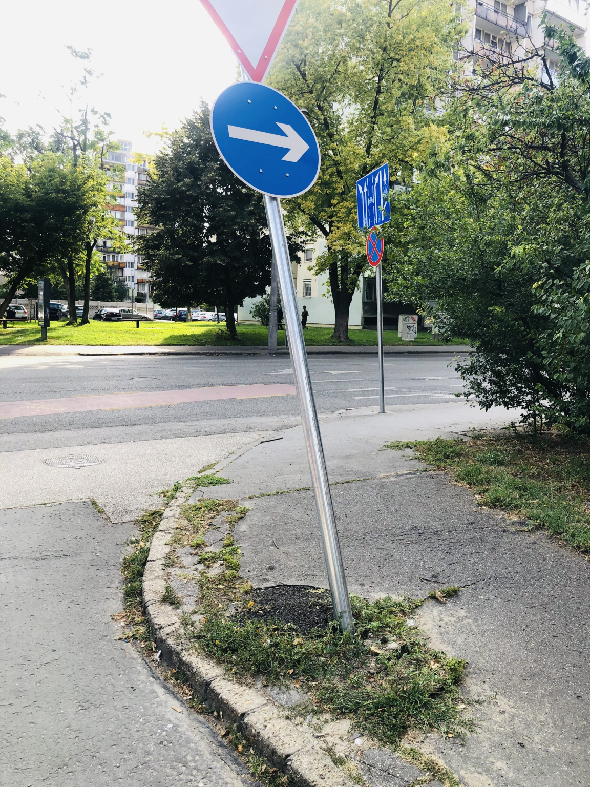 Kérem, állítsák helyre ezt a ferdén álló oszlopot a Baross utcában.