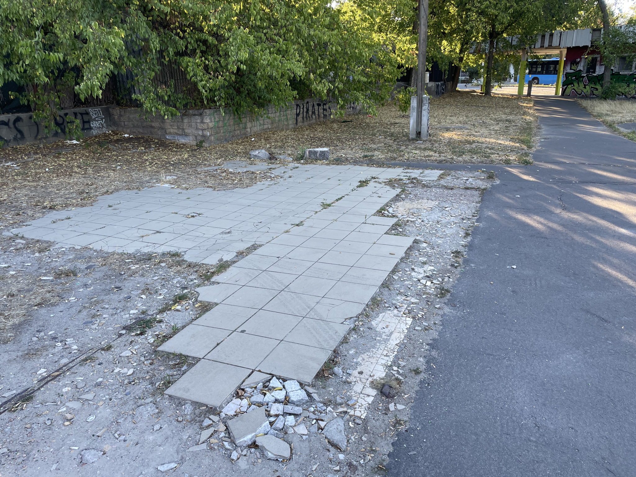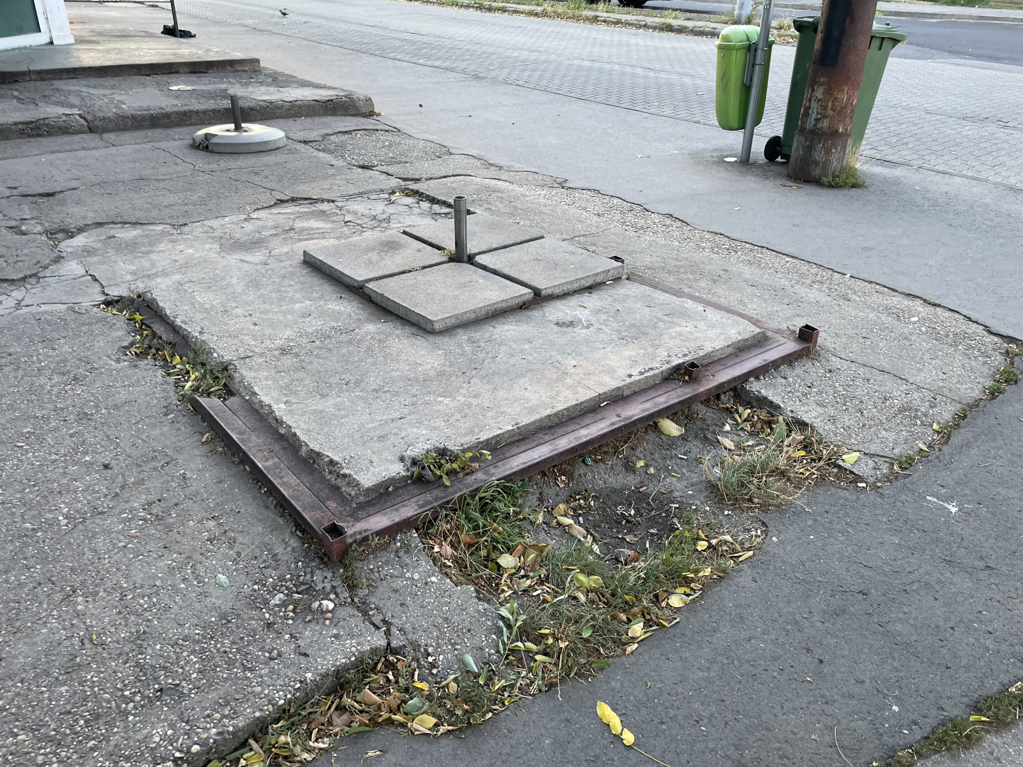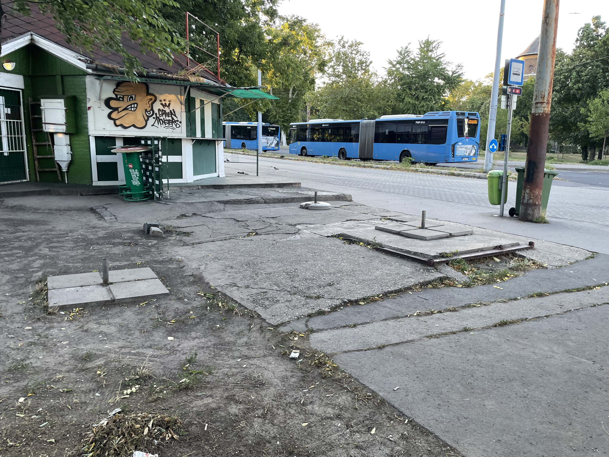 A Népligeti 83-as trolivégállomás mellett és környezetében több elbontott bódé alap van. Akinek a bódé bontás a dolga lett volna, félmunkát végzett. Nagyon csúfak, némelyikből a kiálló vasak balesetveszélyesek.