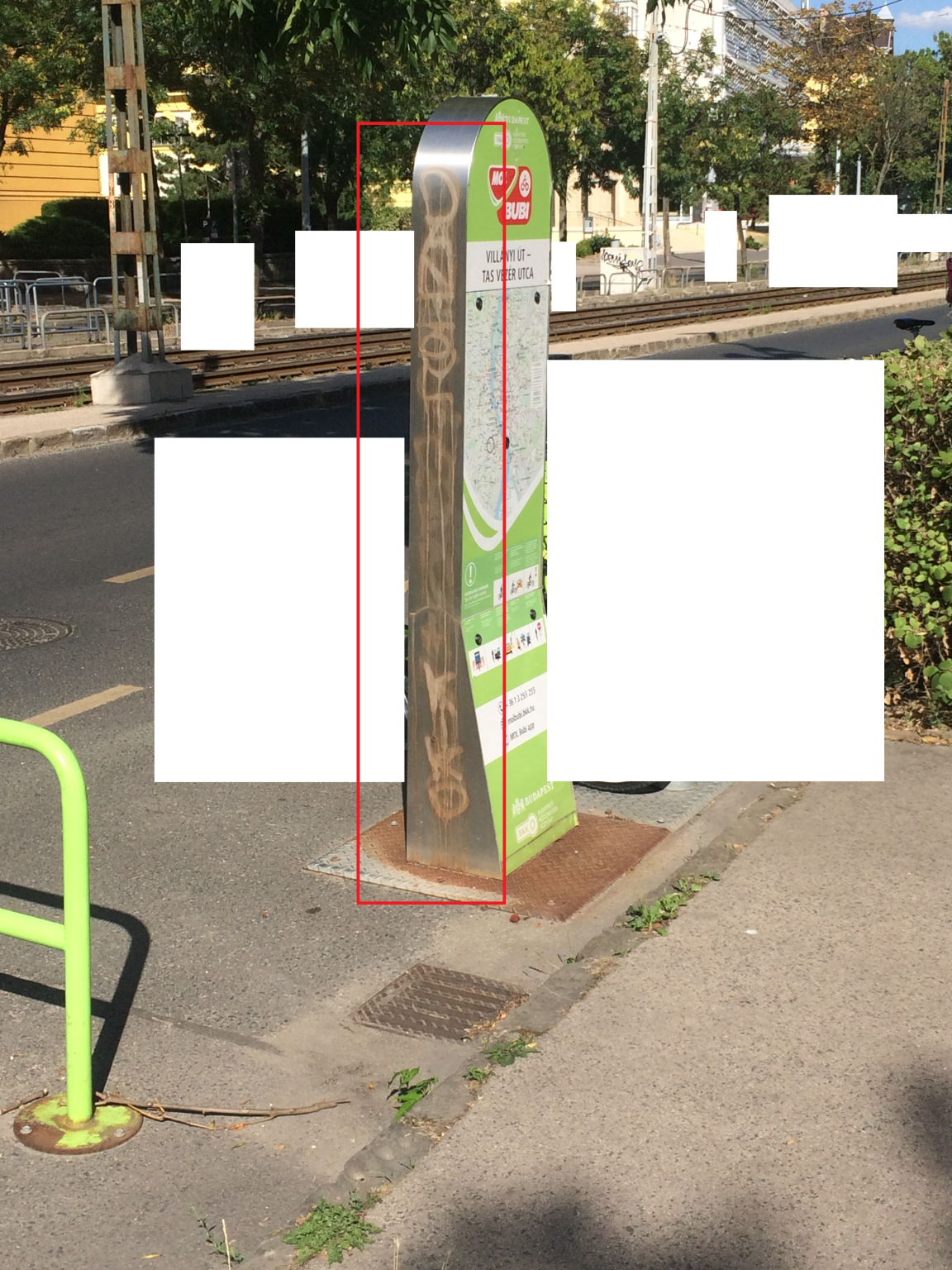 Jelzett helyszínen lévő biciklis pontot megrongálták.
