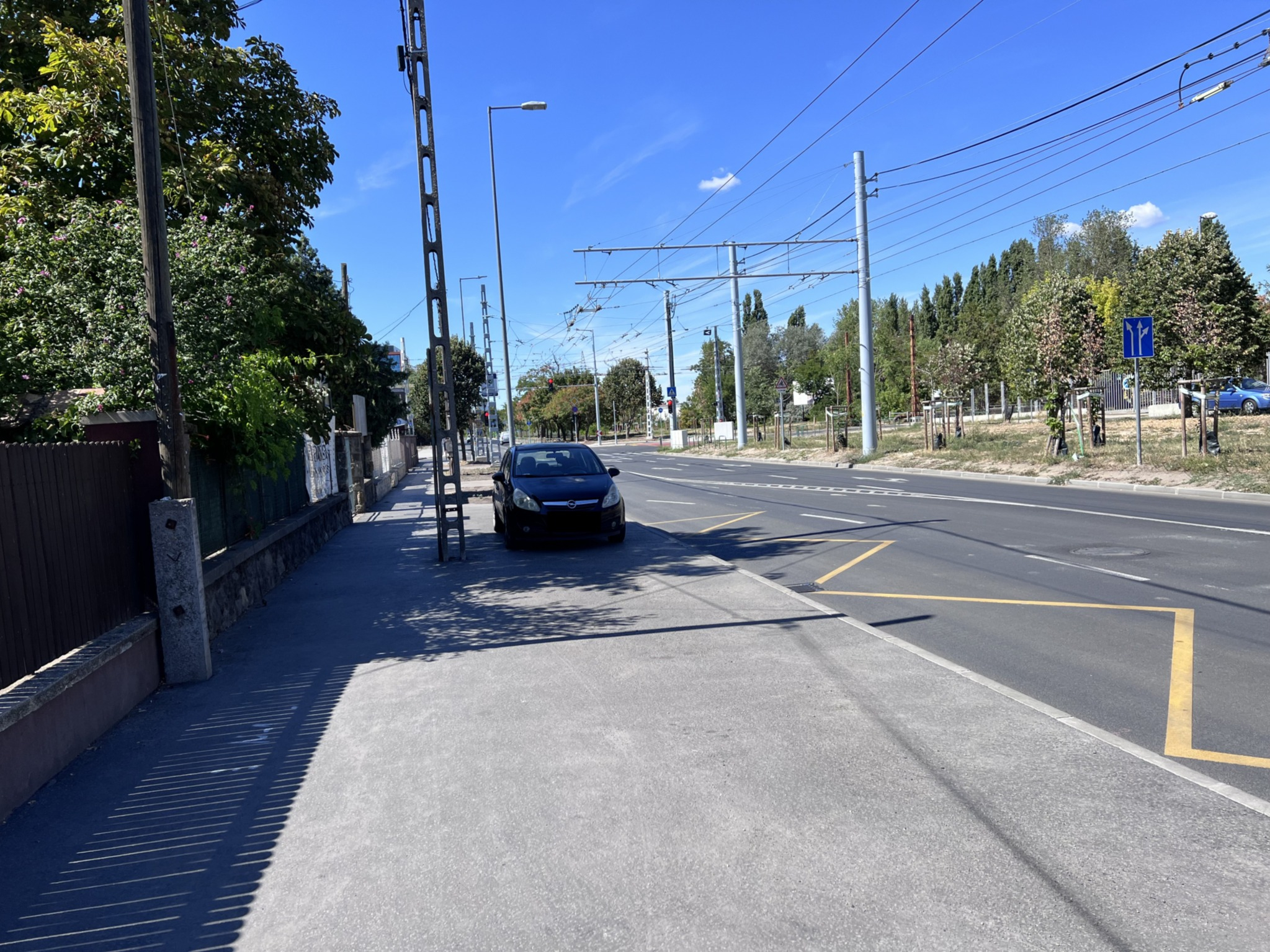 Zuglóban a 77-82 trolik Örs irányú Komócsy utca nevű megállóját rendszeresen parkolónak nézik. Érthetetlen, hogy az átépítés során itt nem készült kiemelt szegély (másik oldalon van) és parkolást gátló elemek sincsenek telepítve. Vagy 1-2 fa. Legyenek kedvesek orvosolni a problémát. Ez egy vasárnapi napon készült fotó, de máskor is ez van. Az is nehezen érthető miért nincs amúgy hónapok óta leaszfaltozva a járda picit hátrébb. A szegélykő a másik. A 7-es busz Rákospatak utca megállójába az összes ki lett rakva? Indokolatlanul hosszan, itt meg elmaradt. Érdekes.