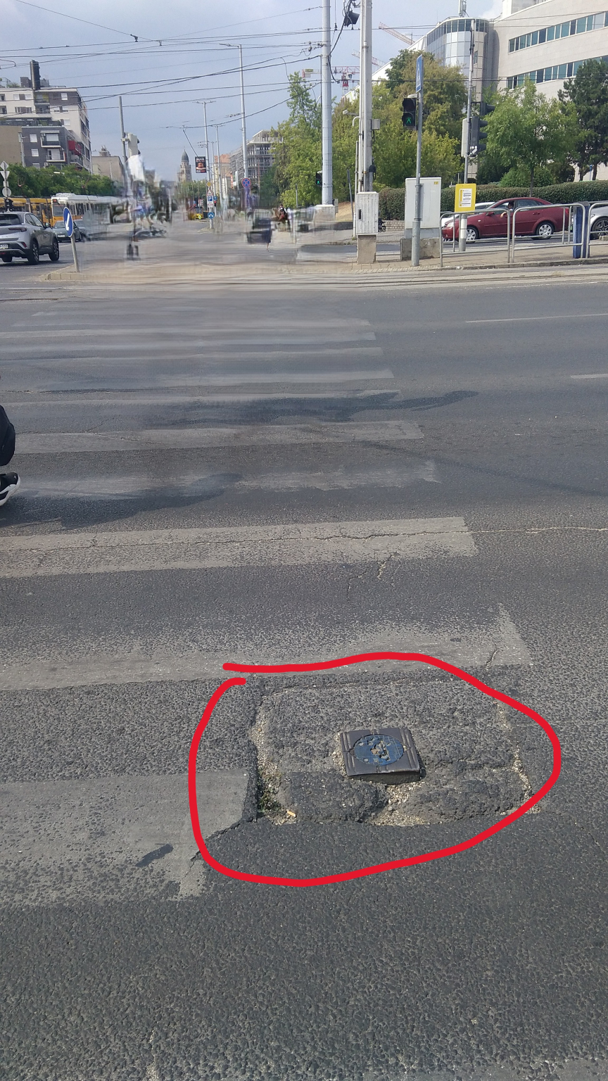 Kérem az illetékest, hogy a képen látható elzárócsap körüli útburkolatot kijavítani szíveskedjenek!