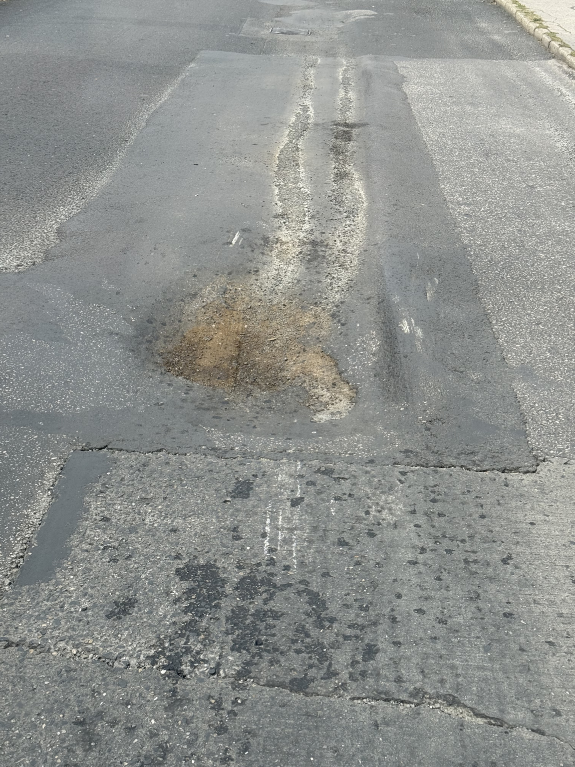 Hatalmas kátyú, kerülni kell, mert minden járműnek leér az alja.