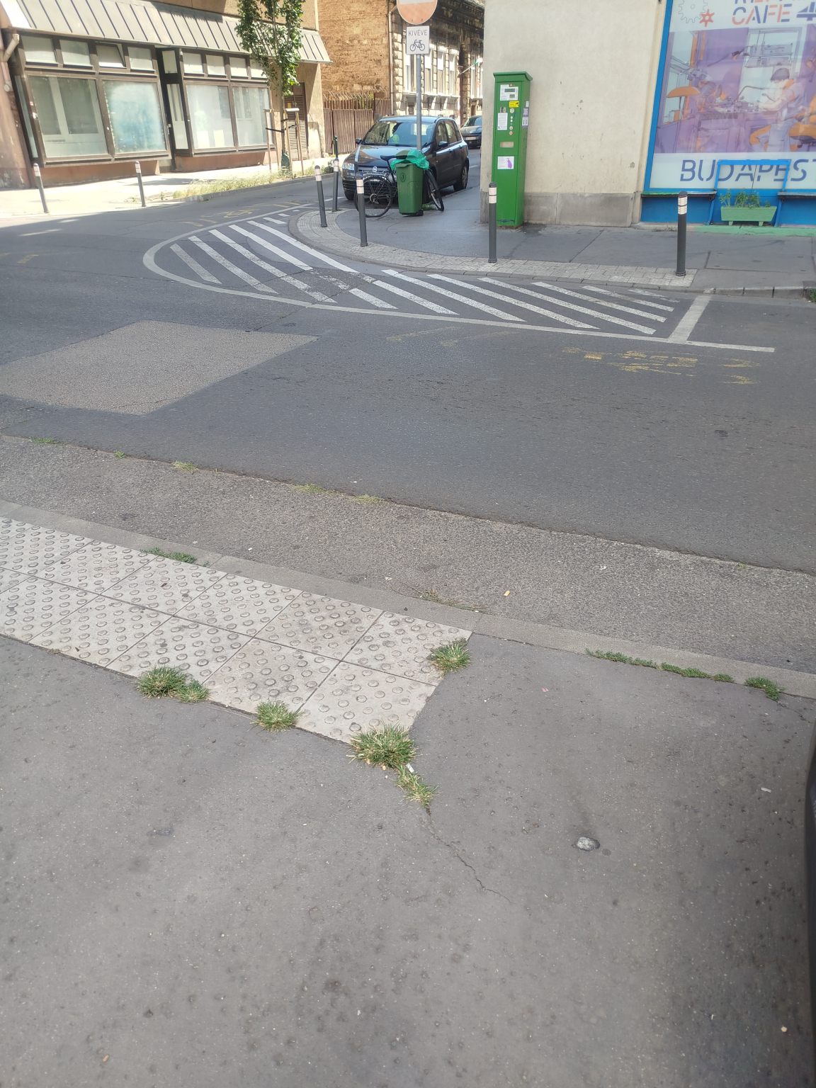 A kérdéses útkereszteződésben az akadálymentesítés követelményeinek megfelelően, megállító taktilis jelzésekkel létesült járdacsatlakozás. A gyalogosok egyirányú, korlátozott sebe...