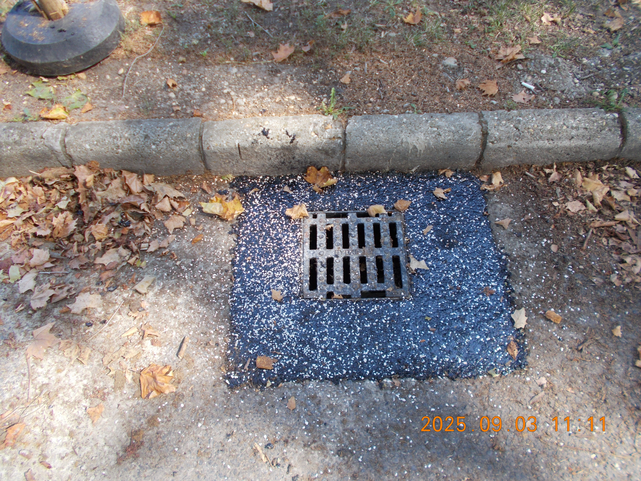 Kérem szíves intézkedésüket a rács pótlására és egyúttal a szikkasztó kitakarítására is, mivel az láthatóan tele van falevéllel.