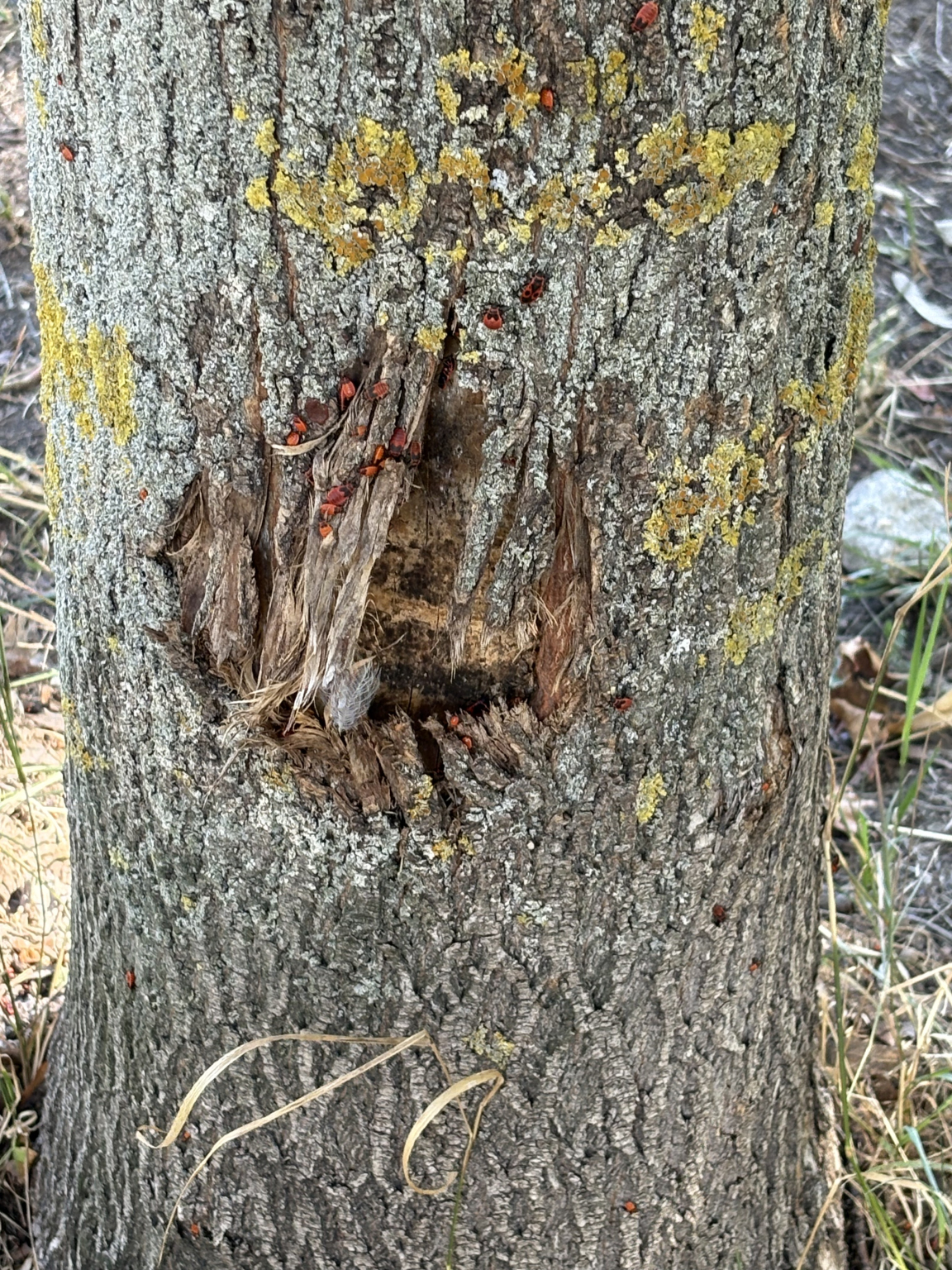 Nekünk nincs olyan faápoló anyagunk amivel ilyen sebeket kezelni szoktak. A fa egeszseges de a serult reszen is sok rajta a piros valamilyen rovar, kezelni kelllene hiszen ez a fa meg el, mentheto.