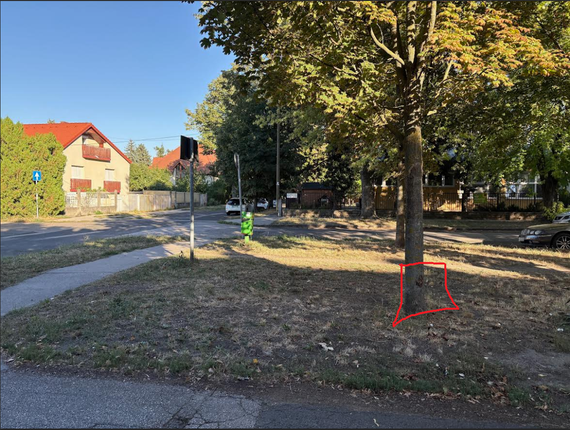 A 1147 Budapest Kerékgyártó utca 56/a-b előtt, a fasor patak felé eső végén, a dupla fasoron a paros oldalon egy fa megserult, velhetoen lokharitotol.. a helyszin a Balazs utca saroknal van.