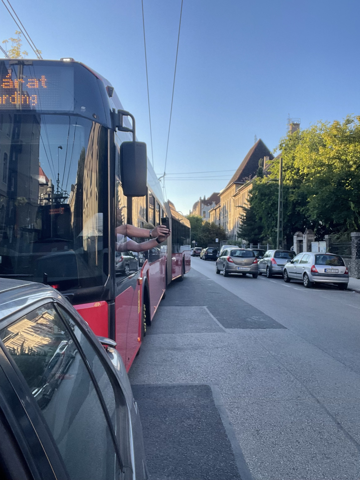 Több esetben (ma is - 2025 aug 26-án) a trolivezetők minősíthetetlen modorban beszéltek velünk a közelmúltban, nekünk felróva, hogy miért állunk a troli mögött (ugye behajtanánk a parkolóhelyünkre), de ez mellékes probléma, nem szeretnénk személyeskedni, nekik sem jó ez az áldatlan állapot.